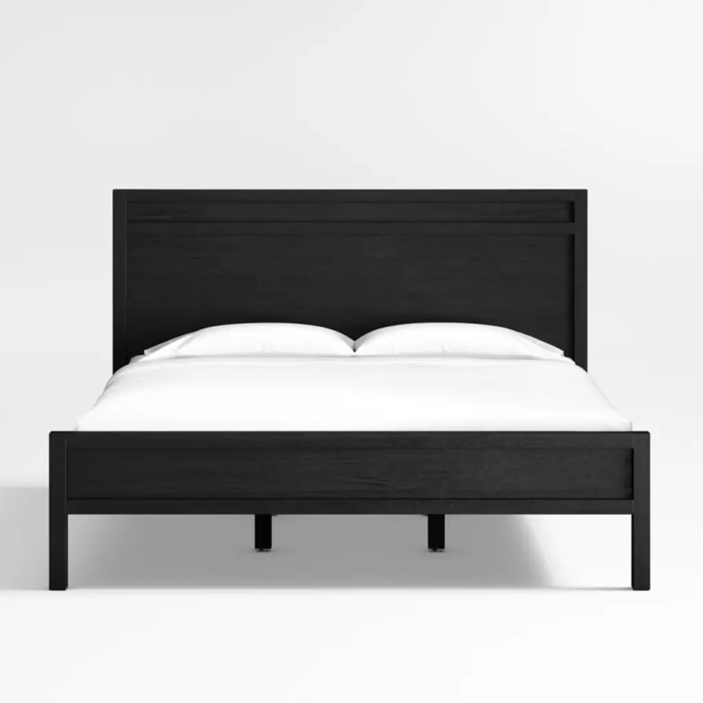 Keane streamlines a classic modern bed in beautiful mahogany finished with wirebrushing and a black stain to bring out the grain. The Keane bed features an architectural yet informal frame that suits a wide range of bedroom decor.