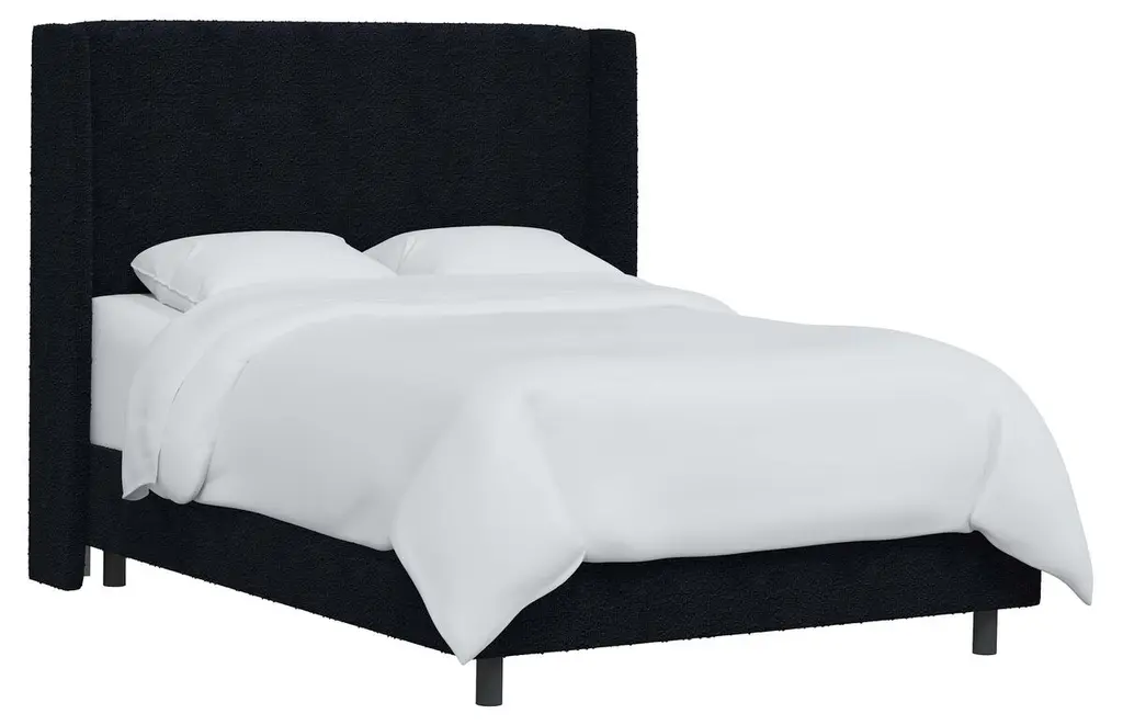 Made in the USA and upholstered in bouclé-like fabric, this contemporary update of the classic wingback bed will complement just about any bedroom. Generous headboard padding ensures long-lasting comfort and support while sitting up to read or watch TV. Mattress and box spring required.
