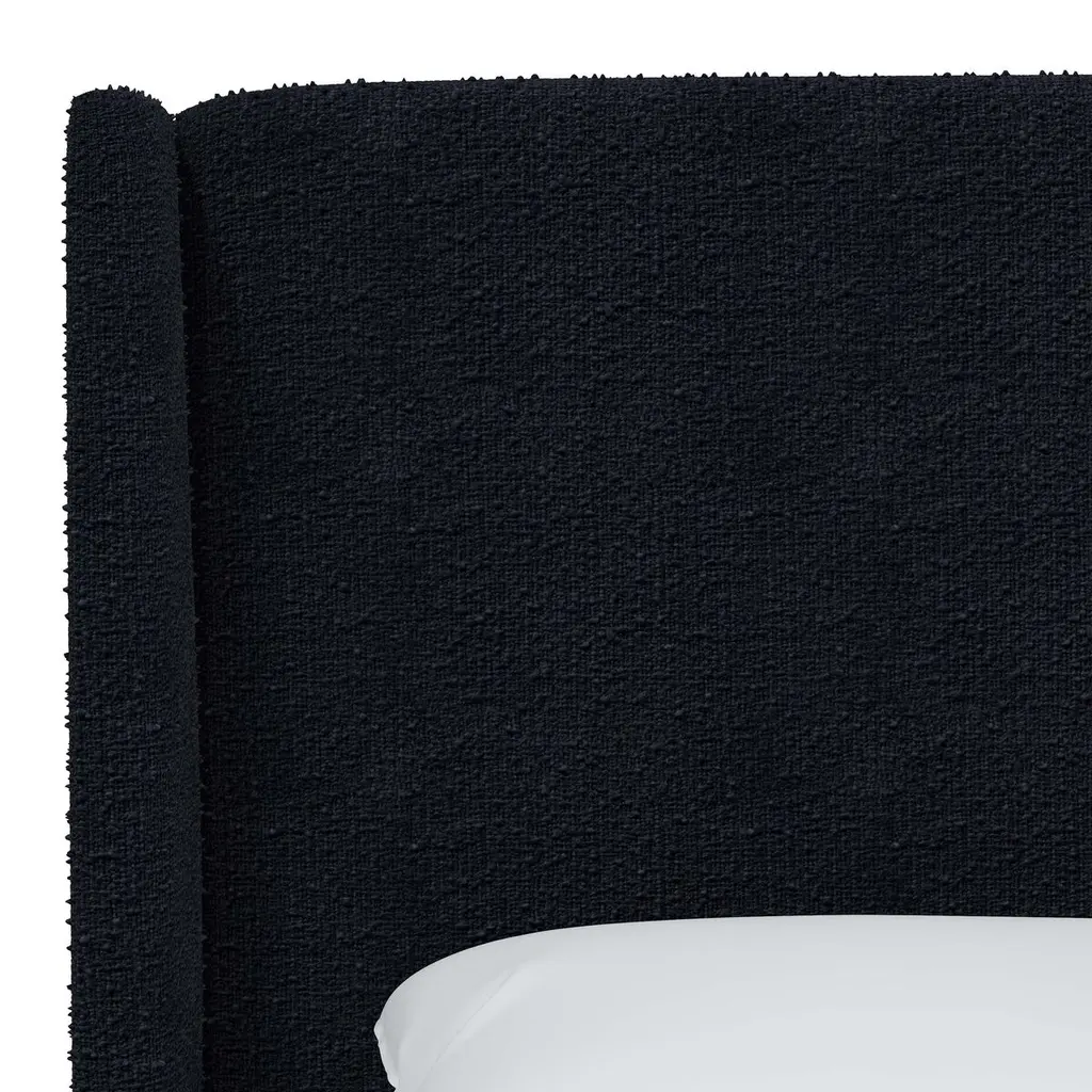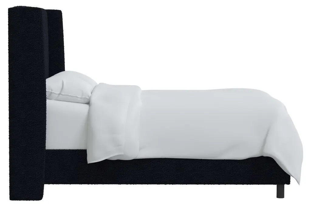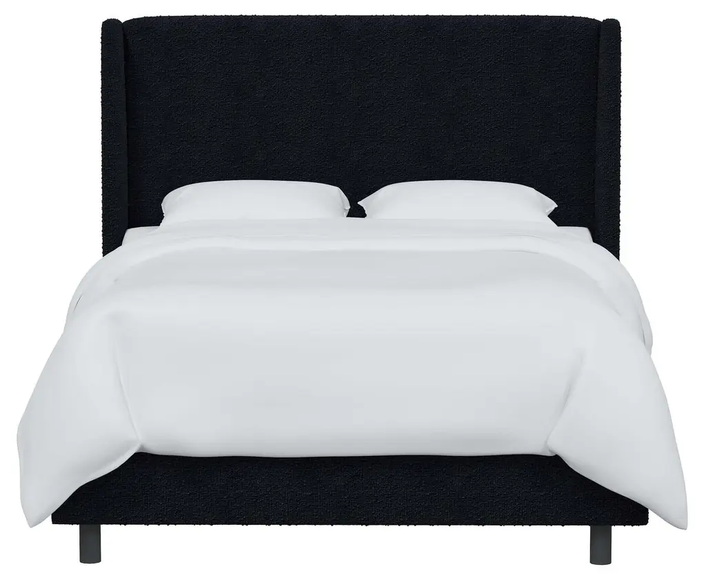 Made in the USA and upholstered in bouclé-like fabric, this contemporary update of the classic wingback bed will complement just about any bedroom. Generous headboard padding ensures long-lasting comfort and support while sitting up to read or watch TV. Mattress and box spring required.