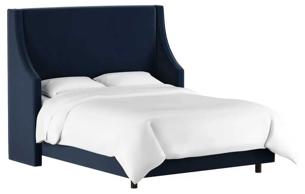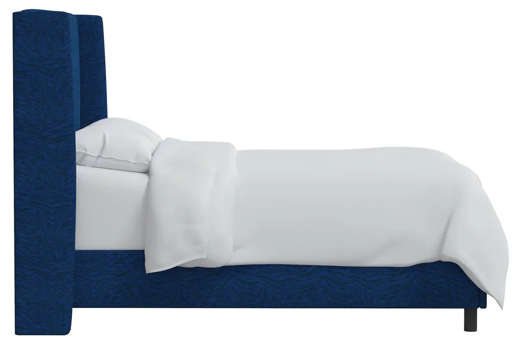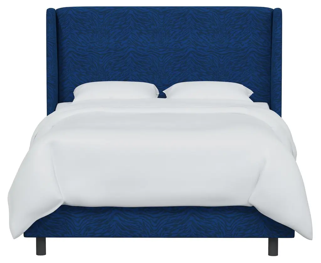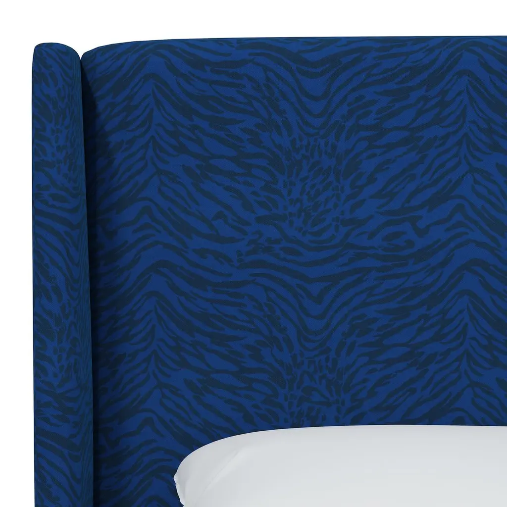 Exclusive to One Kings Lane: Tiger-print upholstery brings timeless glamour to this clean-lined bed. Made in the USA, the bed includes a generously padded wingback headboard that provides comfortable support for reading or watching TV in bed.