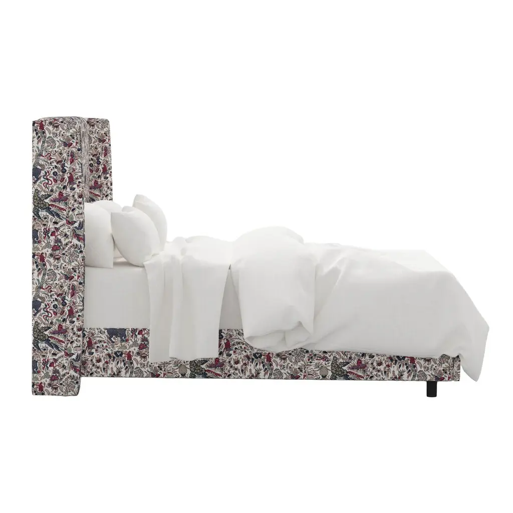 This square top bed features a gentle curved wingback design alongside a plain front. These elements blend perfectly to lend a touch of style and create a piece that will be the center of your bedroom design. The made-to-order headboard matches up easily with the included metal frame and hand-upholstered rails, making assembly simple. An inclusive transitional design makes it an easy addition to any bedroom space. All variations are made with a unique Bali Lion upholstery print.