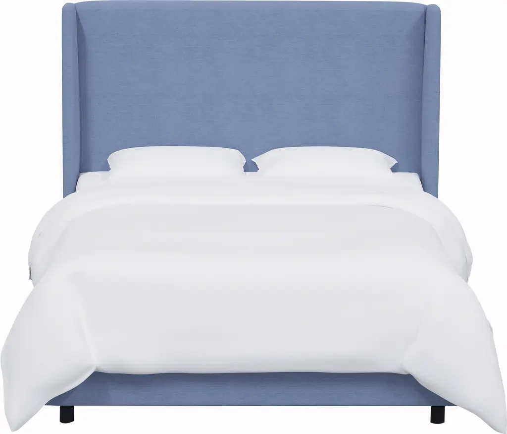Upholstered in a go-with-everything linen blend, this wingback bed will help transform your bedroom into a sanctuary. Box spring and mattress required. Handcrafted in the USA