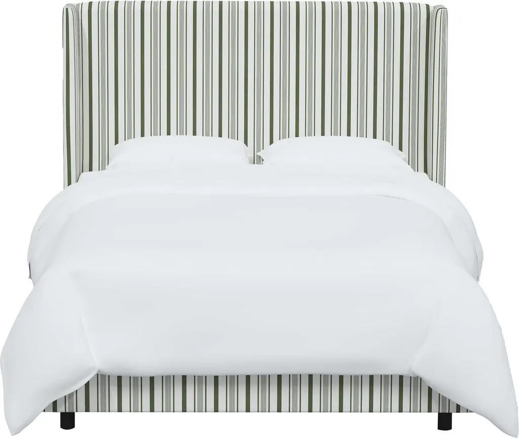 Exclusive to One Kings Lane and made in the USA, this striped wingback bed will help transform your bedroom into a sanctuary. The headboard's ample cushioning makes it a comfy choice for those who like to sit up and read or watch TV in bed. Box spring and mattress required.