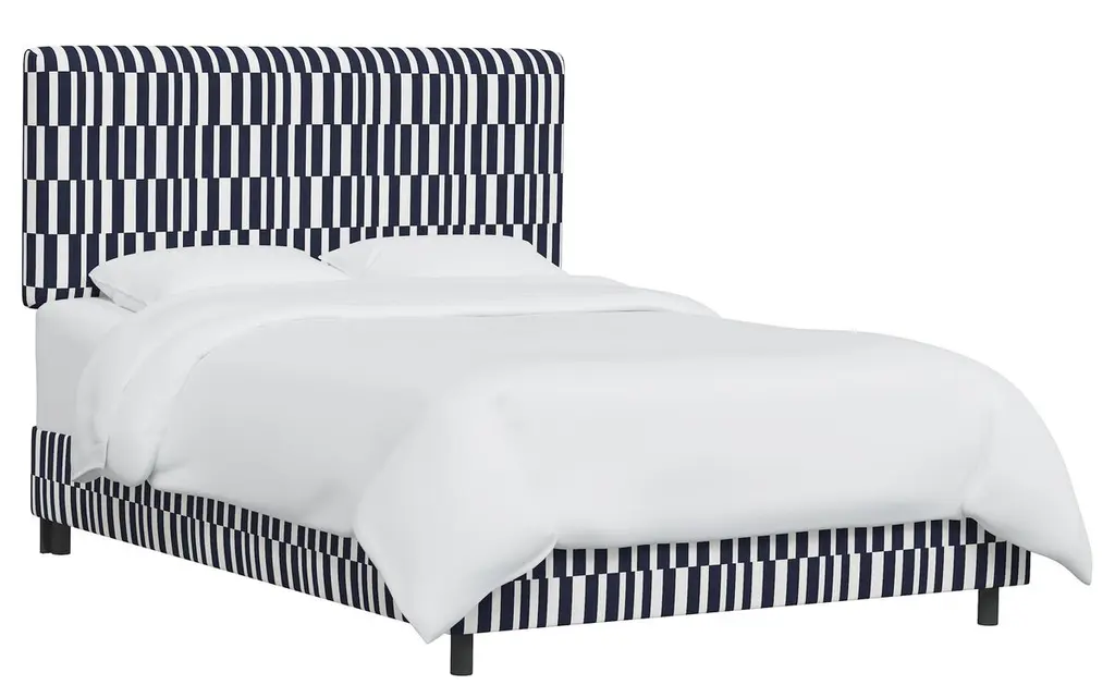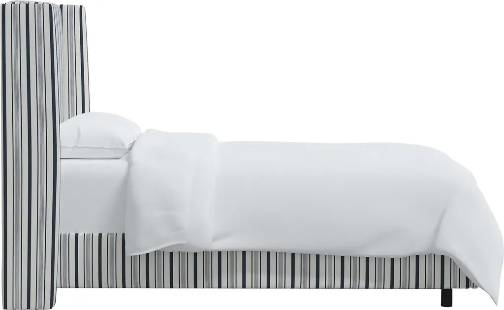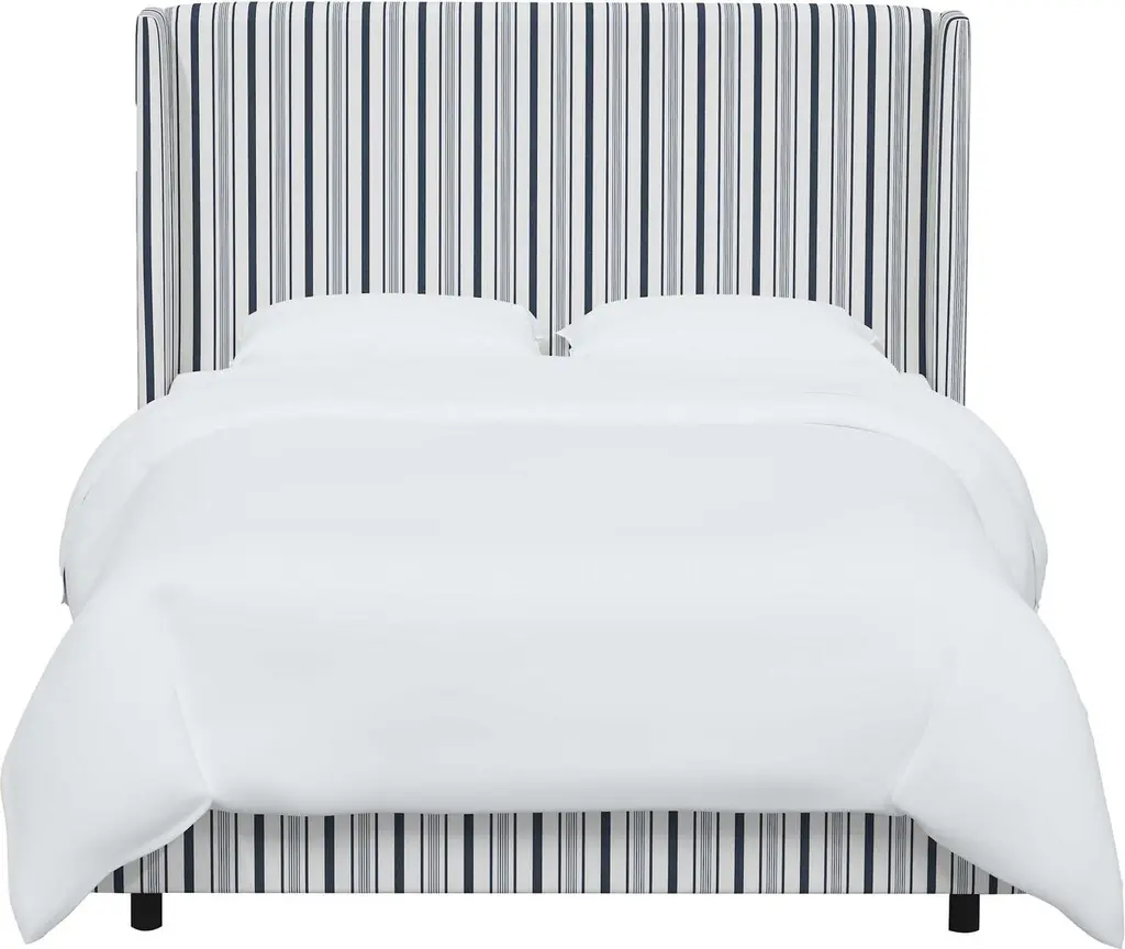 Exclusive to One Kings Lane and made in the USA, this striped wingback bed will help transform your bedroom into a sanctuary. The headboard's ample cushioning makes it a comfy choice for those who like to sit up and read or watch TV in bed. Box spring and mattress required.