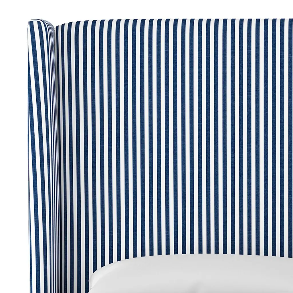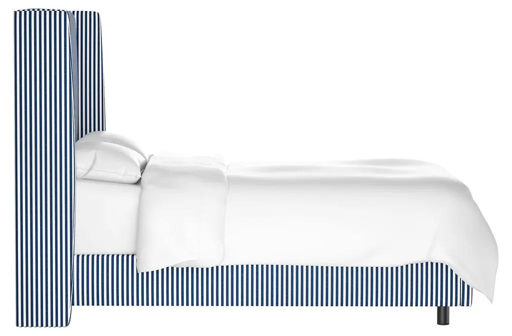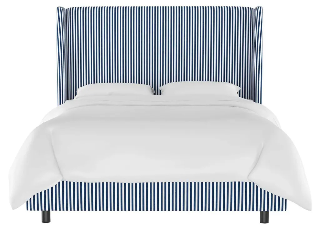 Kelly Wingback Bed, Navy Pinstripe