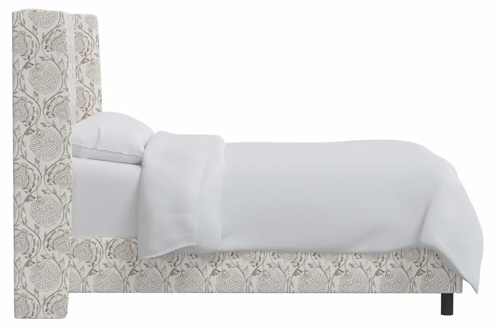 Featuring fabric by Cloth & Co. exclusive to One Kings Lane: This wingback bed is crafted of pine with a clean-lined silhouette and patterned cotton upholstery. We especially love how its ample padding ensures soft, study support while reading or watching TV in bed. Mattress and box spring required. Handcrafted in the USA.