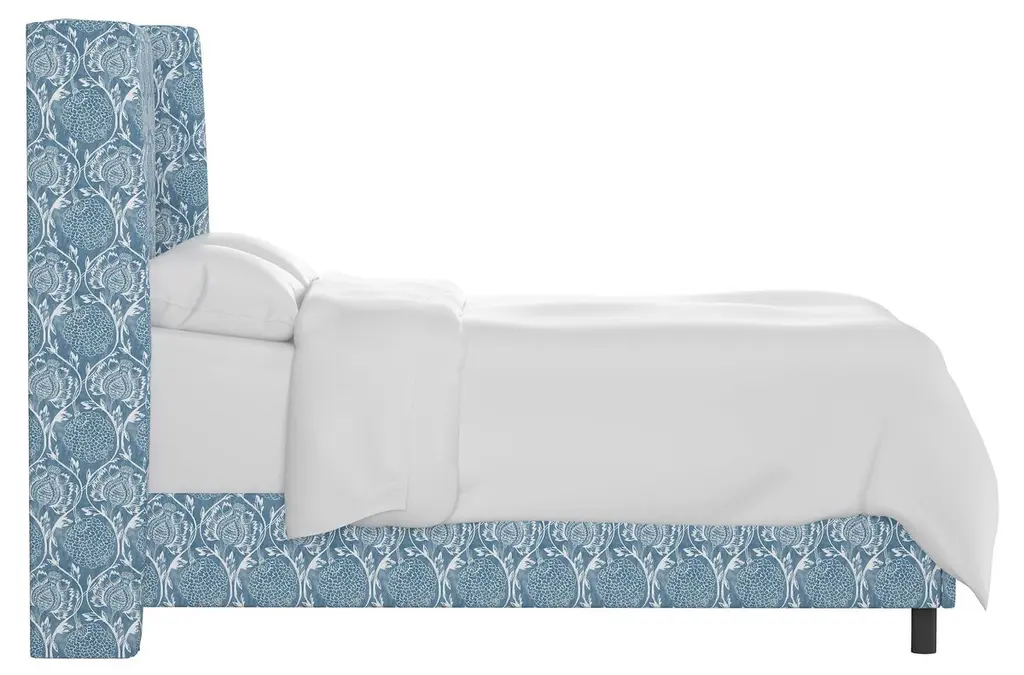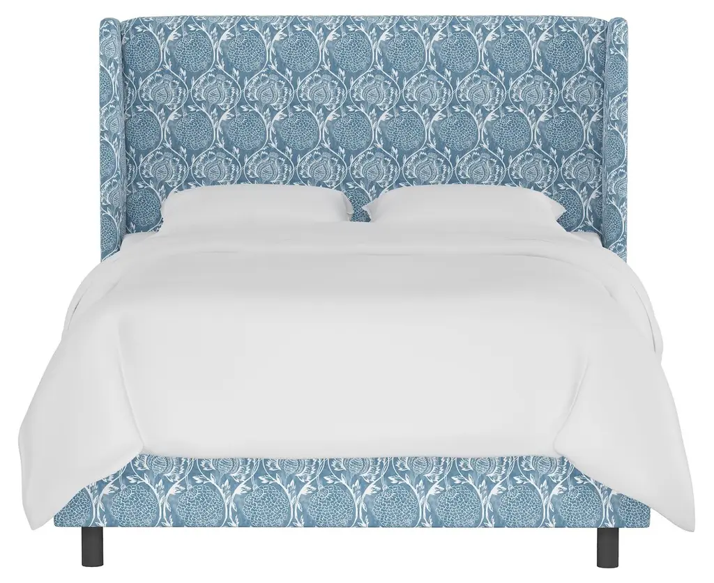 Featuring fabric by Cloth & Co. exclusive to One Kings Lane: This wingback bed is crafted of pine with a clean-lined silhouette and patterned cotton upholstery. We especially love how its ample padding ensures soft, study support while reading or watching TV in bed. Mattress and box spring required. Handcrafted in the USA.