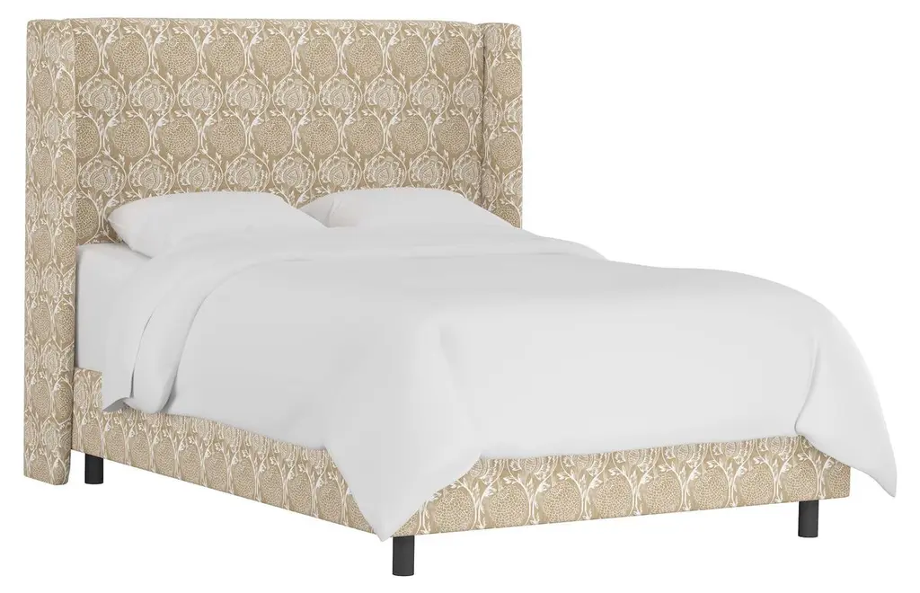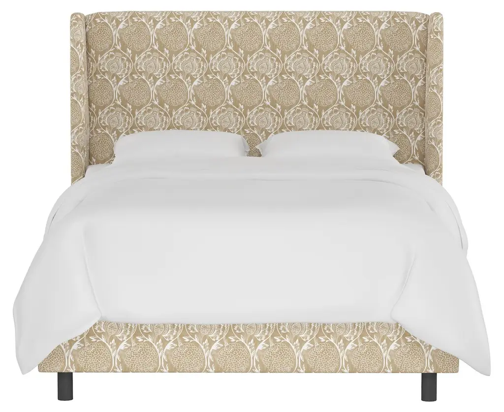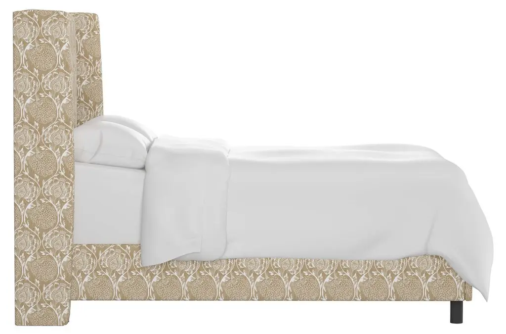 Featuring fabric by Cloth & Co. exclusive to One Kings Lane: This wingback bed is crafted of pine with a clean-lined silhouette and patterned cotton upholstery. We especially love how its ample padding ensures soft, study support while reading or watching TV in bed. Mattress and box spring required. Handcrafted in the USA.