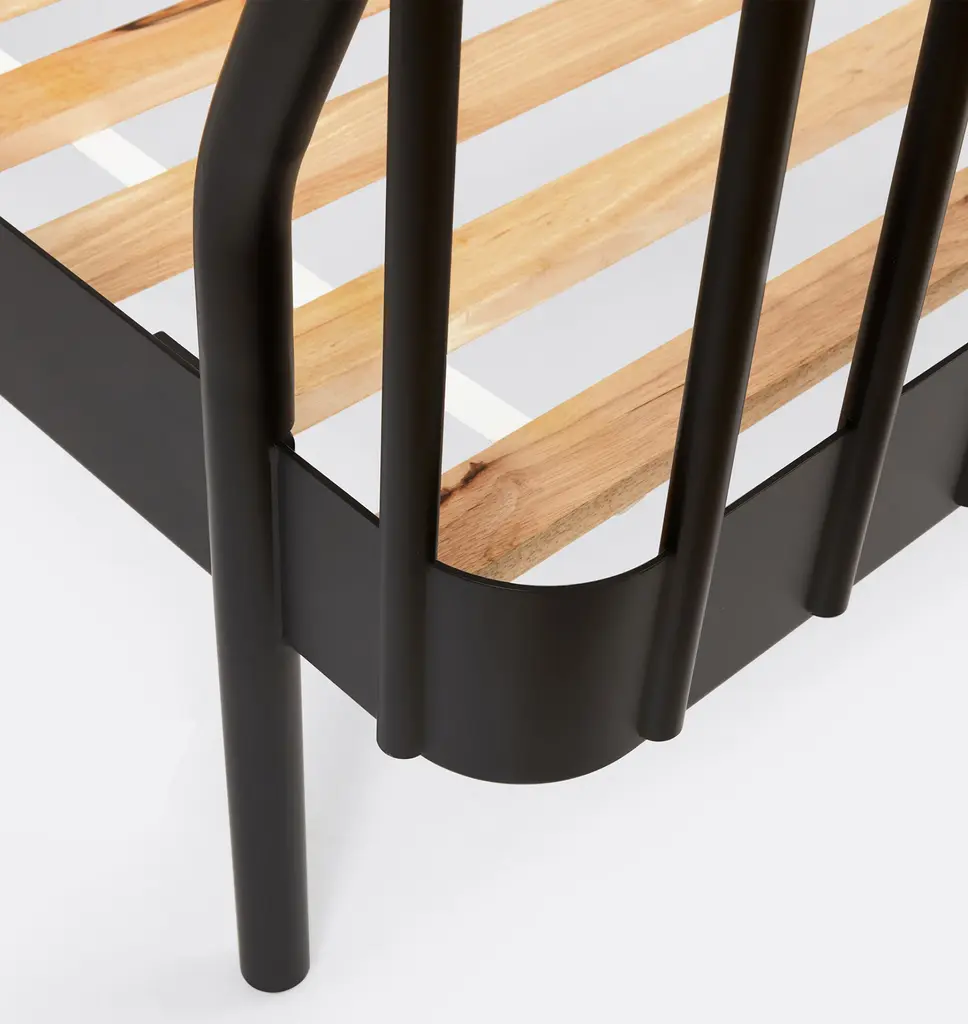 Beautifully suited for any style bedroom, our Kelvin Bed is crafted from powder coated black metal and features a curved spindle headboard and footboard that wrap gently around its frame.