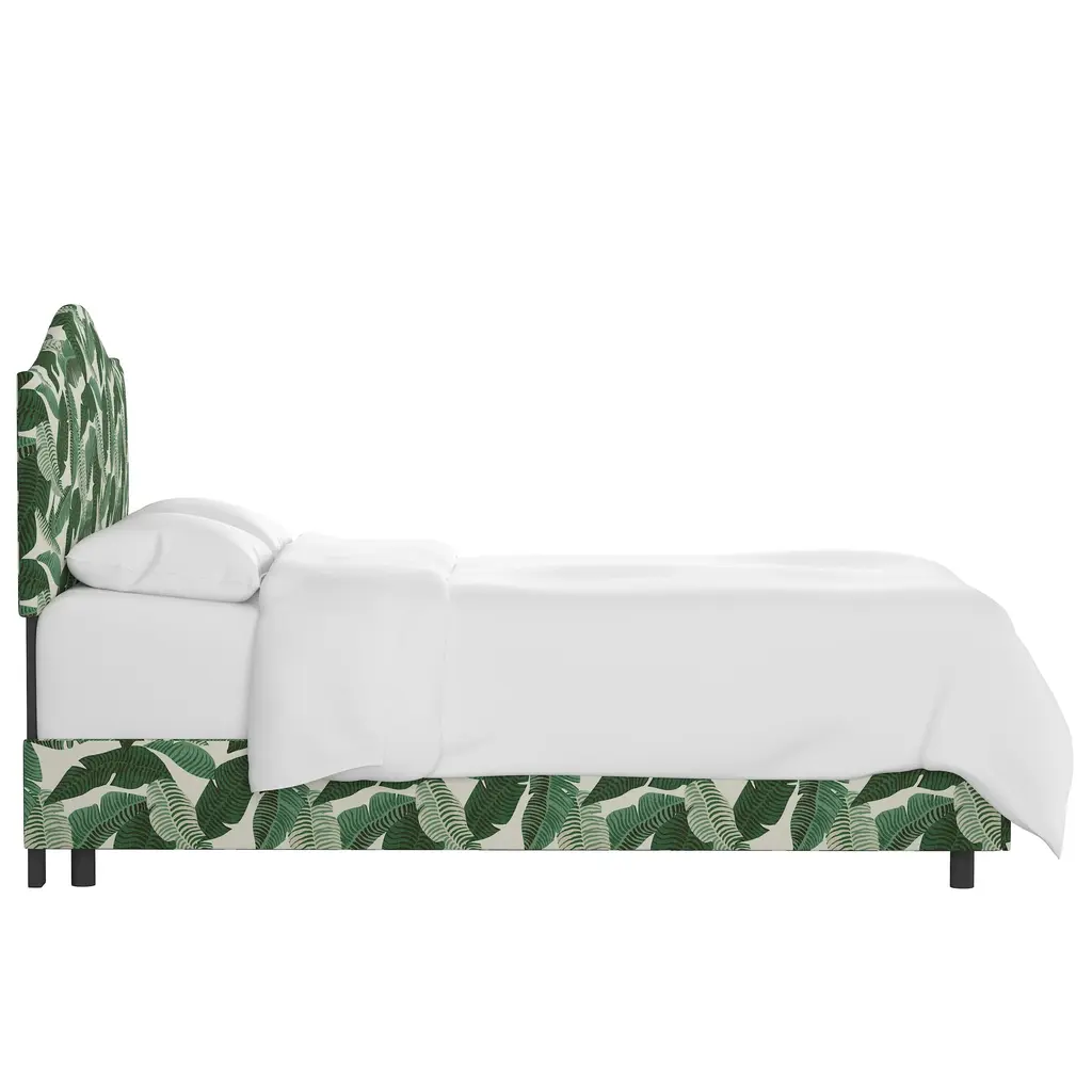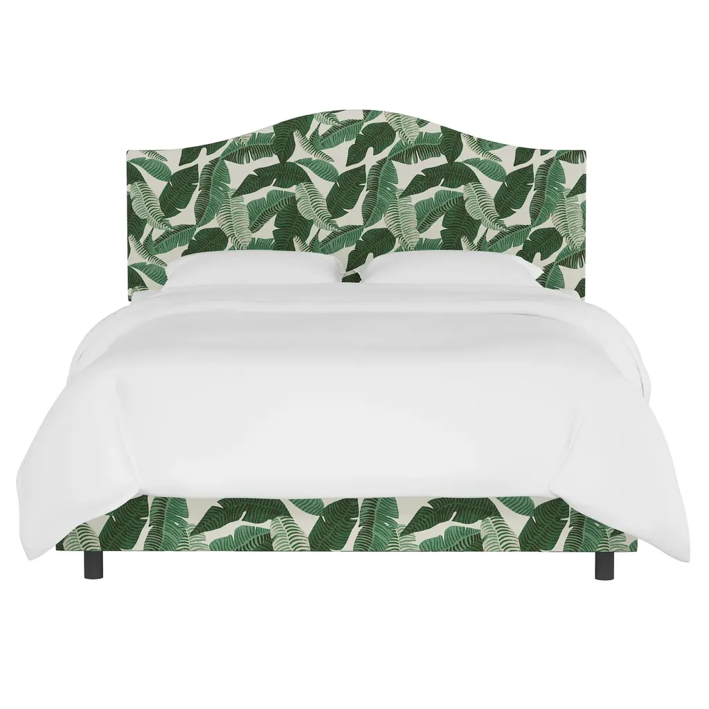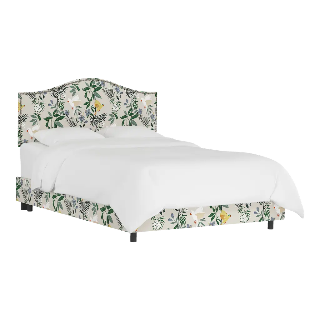 This fully upholstered bed has a unique headboard shape, allowing you to chart a course for a bedroom retreat that is at once comfortable—and distinguished. The headboard is wrapped in a sumptuous Cotton fabric, highlighting the beautiful curves and angles. The bed comes complete with fully upholstered rails and a standard metal bed frame which is easy to assemble. If you are in search of an exceptional design to serve as the primary focus in your bedroom, this bed definitely deserves consideration.