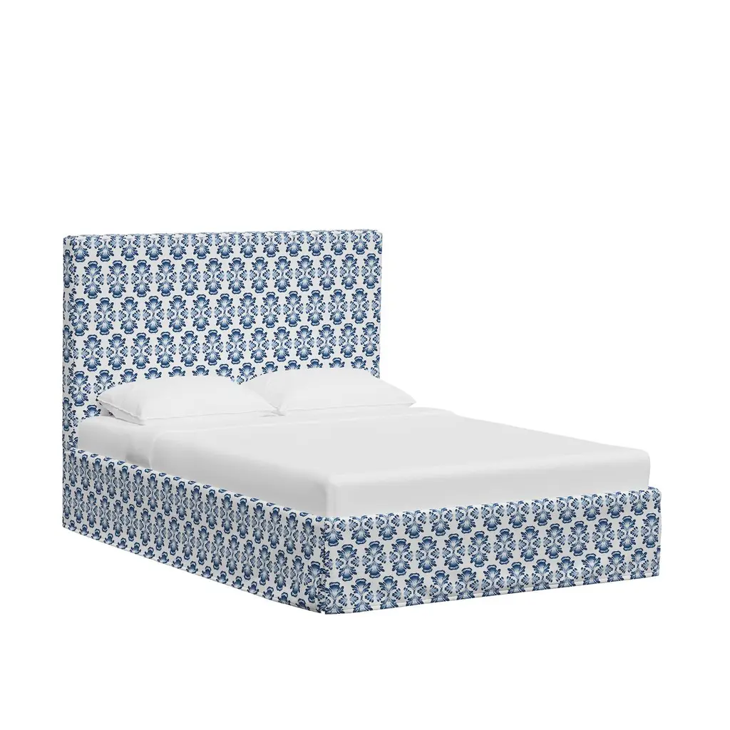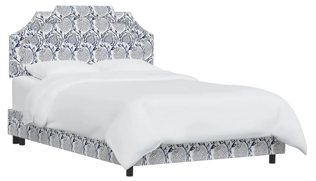 Featuring fabric by Cloth & Co. exclusive to One Kings Lane: Cotton upholstery with a blue-and-white floral design covers this bed's beautifully arched frame, bringing a bold splash of color to the bedroom. Generous padding provides a soft, sturdy backdrop for reading and relaxing in bed. Mattress and box spring required. Handcrafted in the USA.