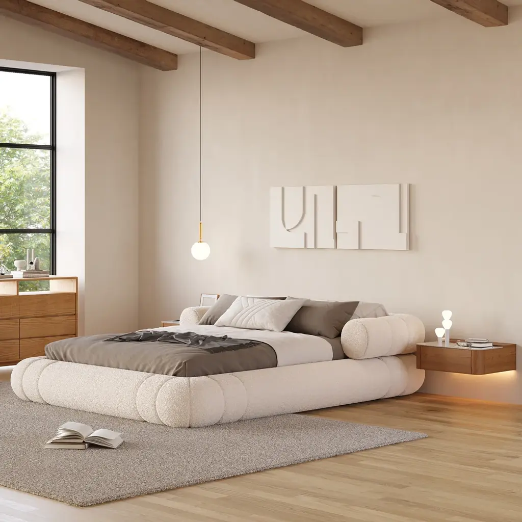 King Size Boucle Upholstered Cloud Floor Bed Frame