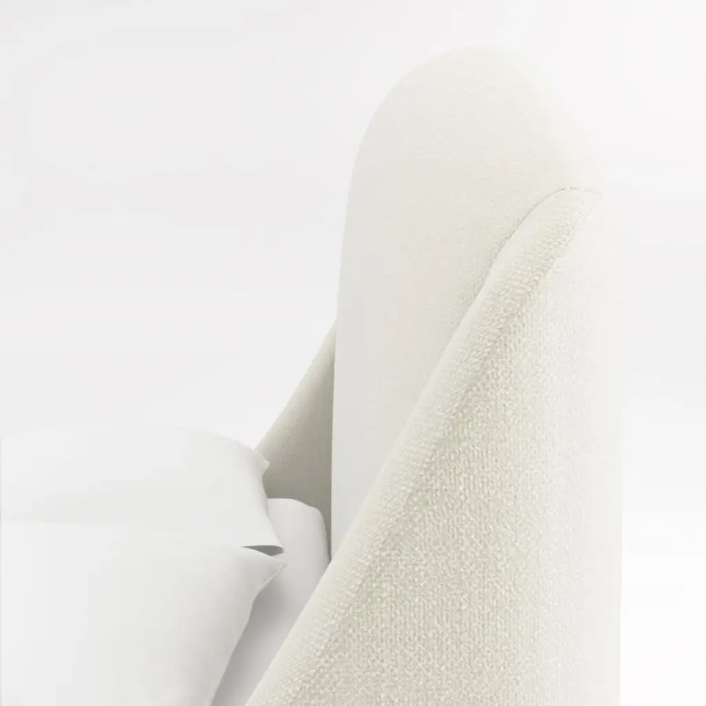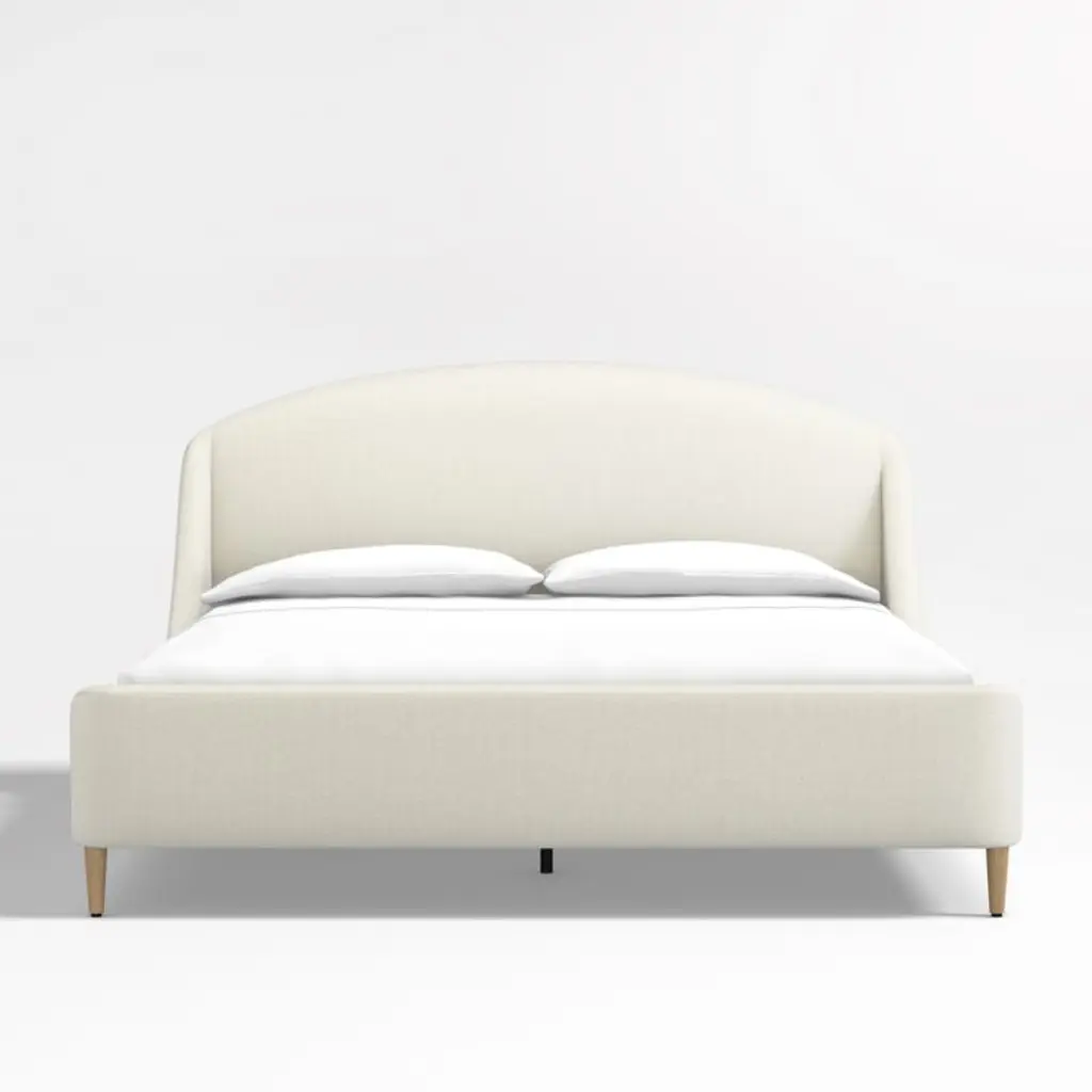 Lafayette streamlines the sumptuous curves of a French-style chaise into an upholstered bed for the modern bedroom. Fully upholstered in an ivory linen-like fabric, the bed curves down from the gently rounded headboard to slim rails that gracefully climb to form the lower-profile footboard. Turned solid oak legs have a natural finish to complement the upholstery and keep the look fresh and modern.By choosing FSC ®-certified furniture, you are supporting responsible management of the world's forests.