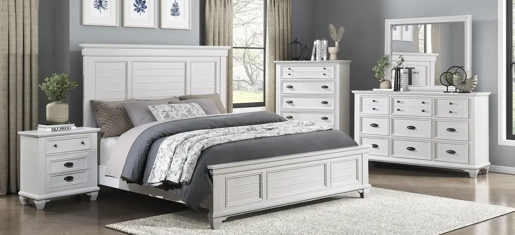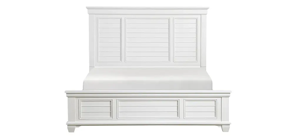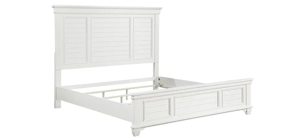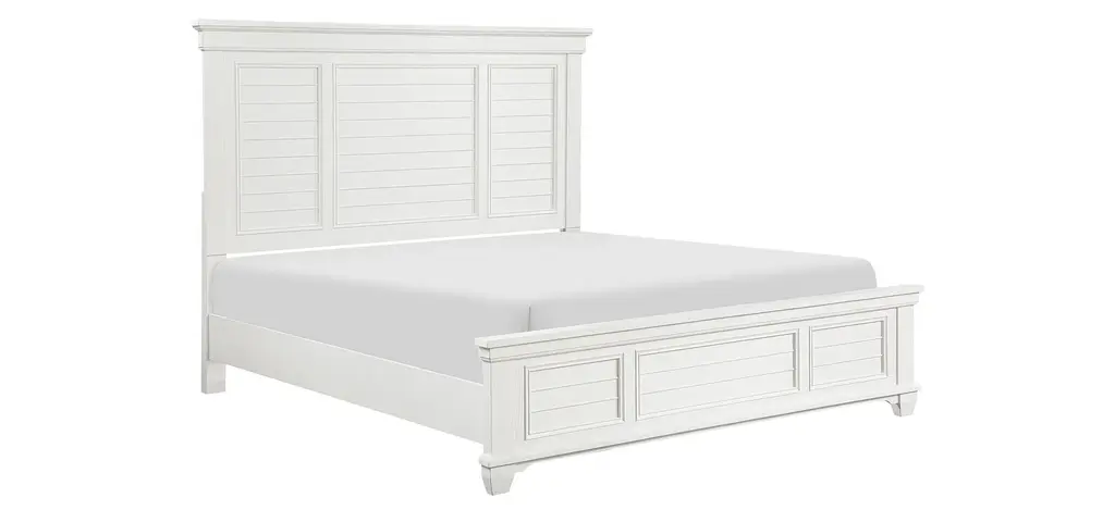 Bringing to mind lazy days at the beach, or peaceful afternoons in the country, the LaFollette Bed's charming aesthetic pairs to your homes classic dcor. The traditional framing of the collection is covered in a white finish, its bright hue a refreshing addition to your bedroom. Shutter paneling on the queen bed solidifies the transitional style, lending charming accent to your space.