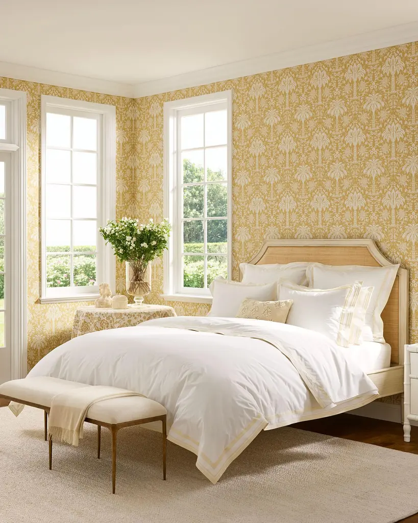 A lesson in poise. Sophisticated in stature, a notched frame. An upholstered headboard acts as a canvas for pattern and hue.
