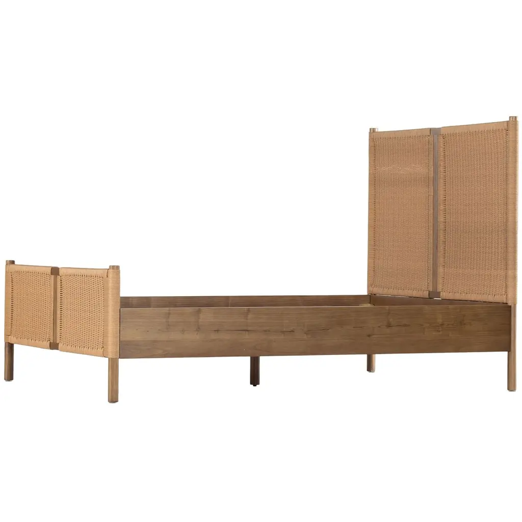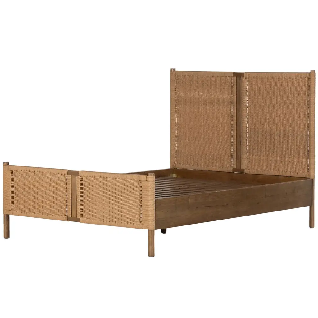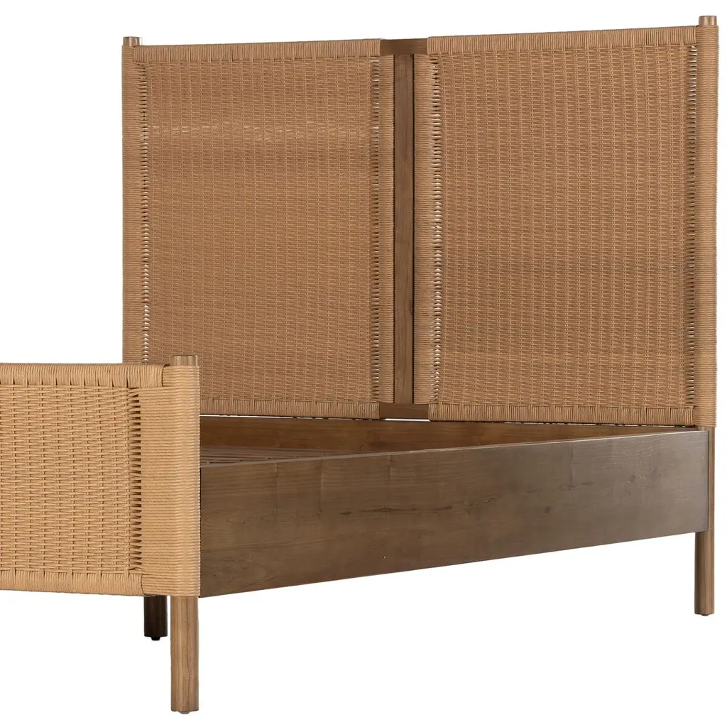Bring the ease of a tropical resort to your bedroom with this impeccably crafted bed. The frame is made of durable sungkai wood; the headboard and the footboard feature panels of woven faux rattan. Because the bed comes with a slat support system, a box spring is not needed.