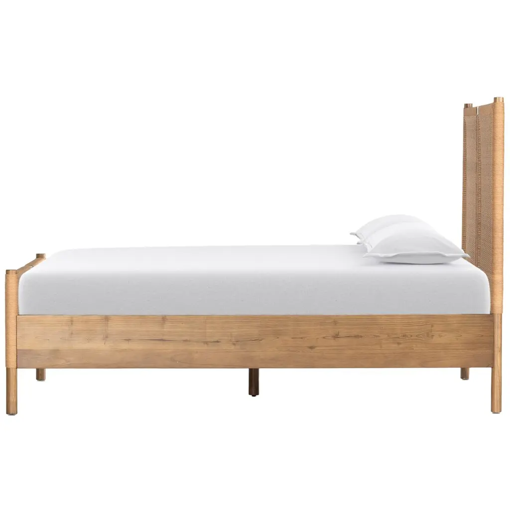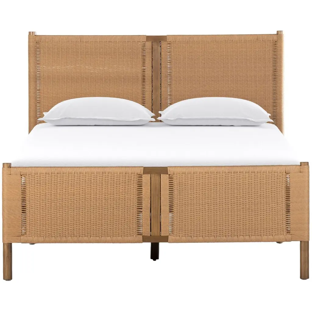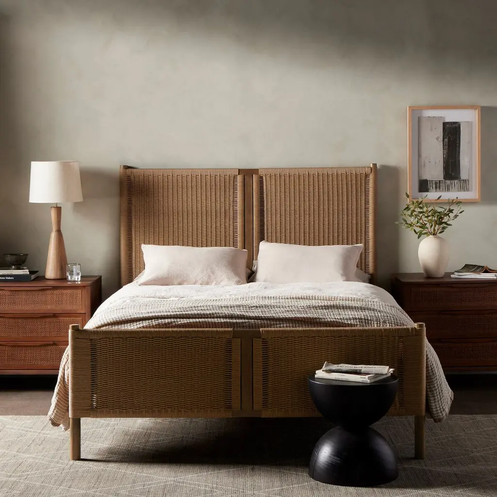 Bring the ease of a tropical resort to your bedroom with this impeccably crafted bed. The frame is made of durable sungkai wood; the headboard and the footboard feature panels of woven faux rattan. Because the bed comes with a slat support system, a box spring is not needed.