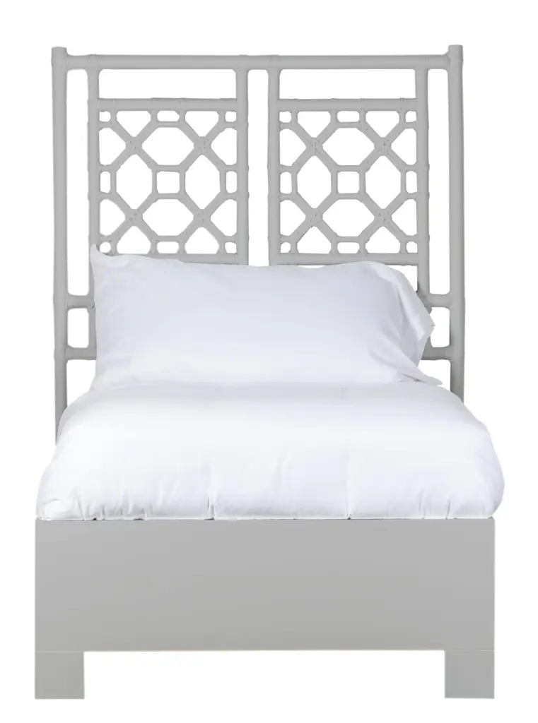 A timeless design, this classically styled bed features a Rattan headboard with a Maple Bed Frame. The Rattan headboard is hand-wrapped with Rawhide Bindings to add a beautiful contrast and strength. The Maple Bed Frame, which accepts a box spring and mattress, is built in the USA. The Rattan headboard easily attaches to the Bed Frame. Each bed is custom made and finished to order. This bed is an artistic centerpiece and will make a statement in any bedroom.