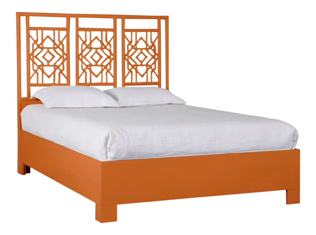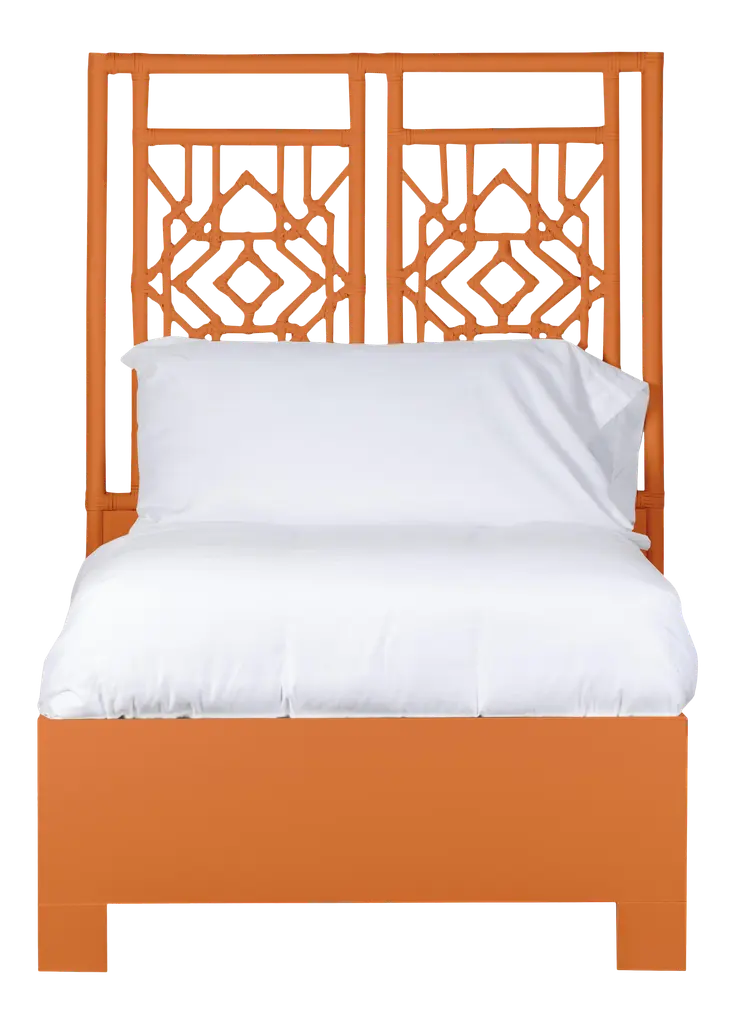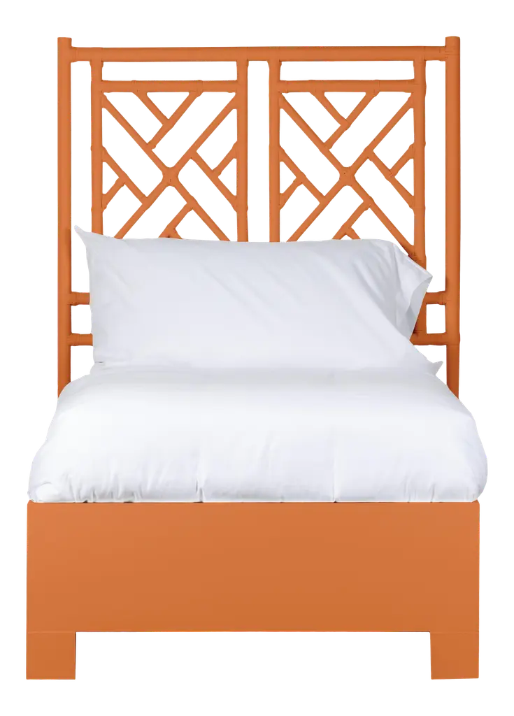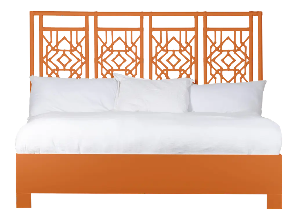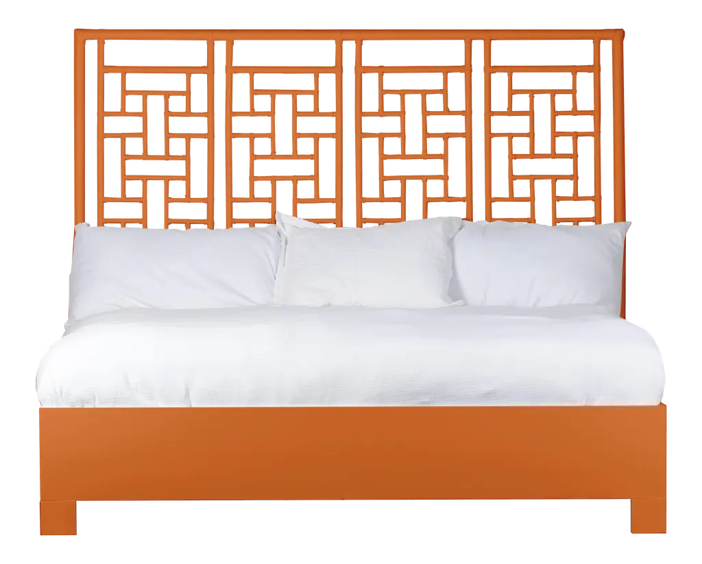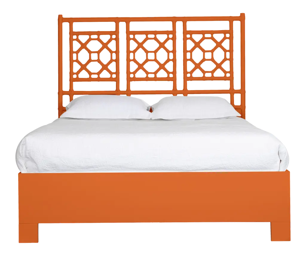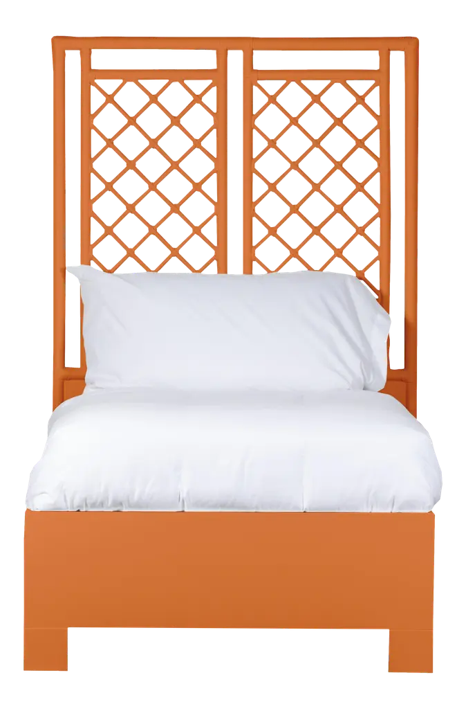 Transform your bedroom into a serene coastal retreat with our Lattice Back bed, a perfect blend of modern design and natural charm. Beautifully handcrafted from natural rattan, each joint is carefully wrapped with leather bindings for added durability and an artisanal touch. The standard maple bed frame is designed to accept a mattress and box spring. It's modern design evokes sophistication and elegance, brining a coastal flare to any space. This piece is made to order, so please allow time for delivery.