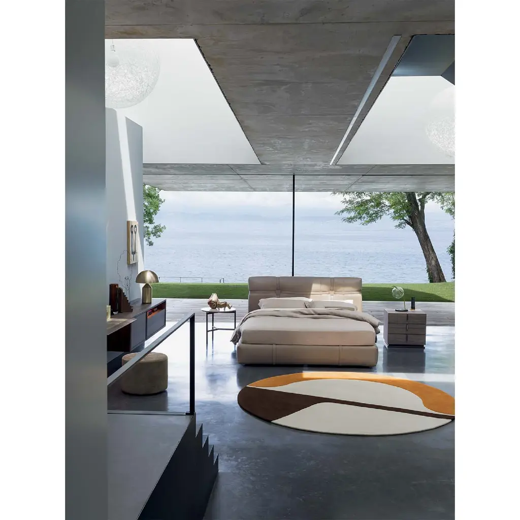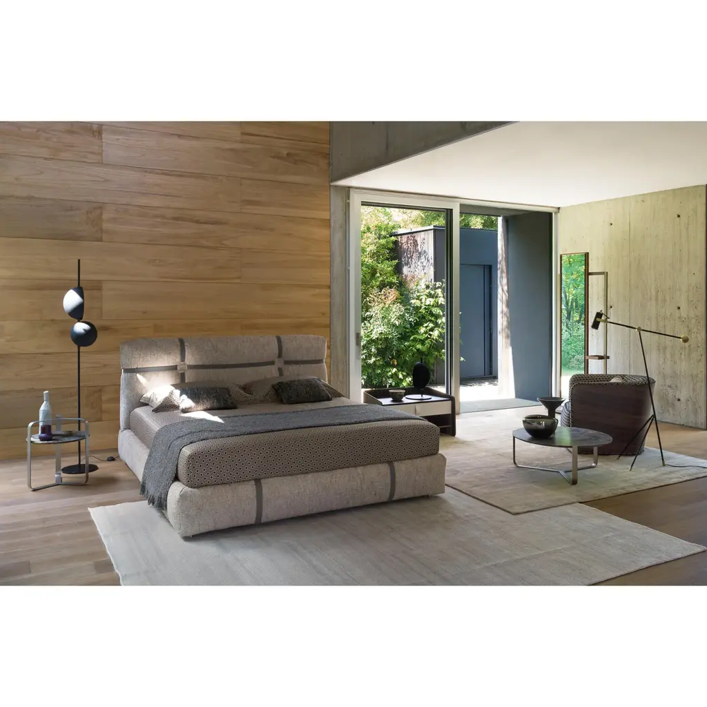 Elegantly tailored details for a double-size bed characterized by an unusual combination of straps and eyelets on the headboard and the panel surrounding the bed. Original, contemporary and unmistakeable, New Bond is even more stylish with its top quality leather covers and straps, in the same shades.