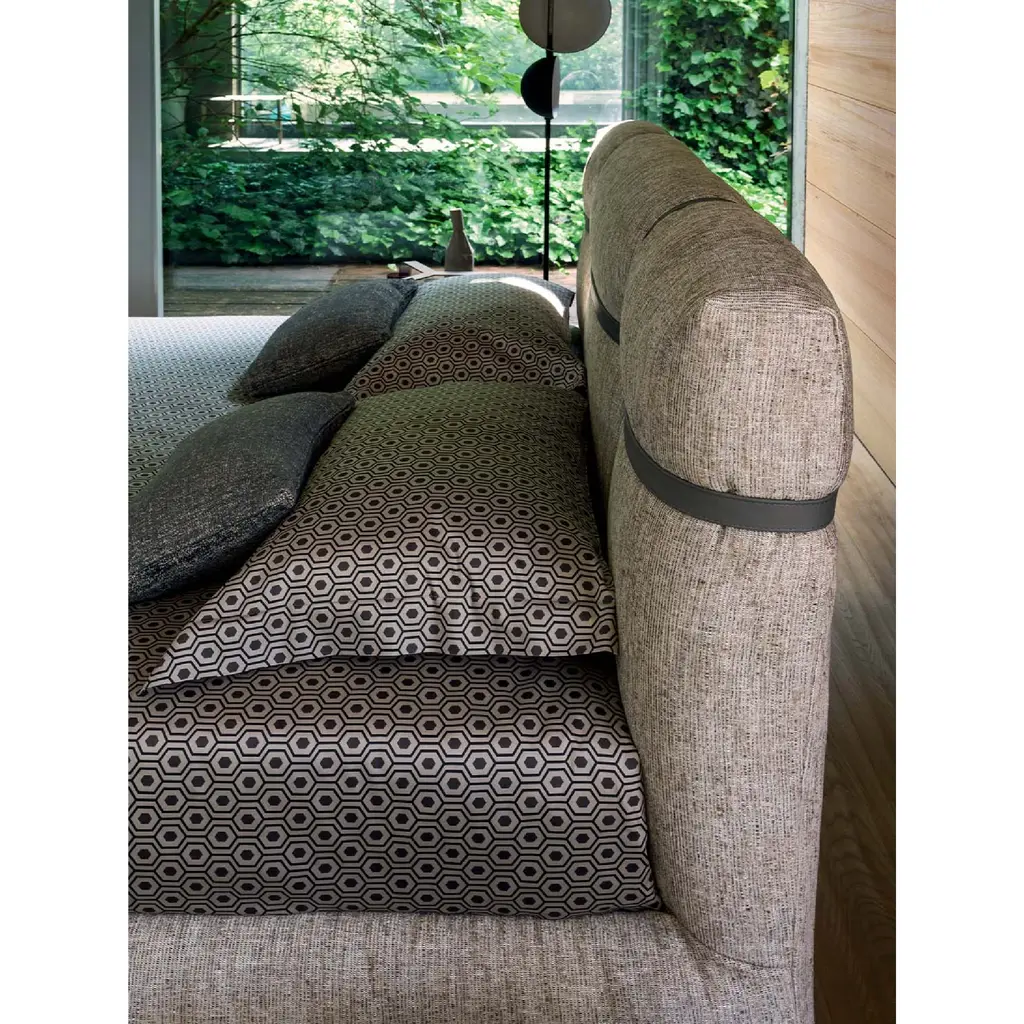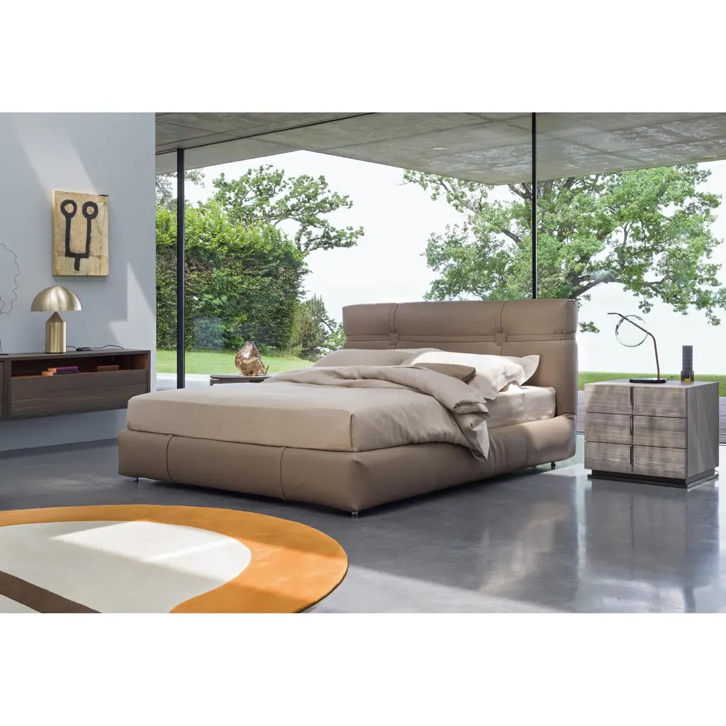 Elegantly tailored details for a double-size bed characterized by an unusual combination of straps and eyelets on the headboard and the panel surrounding the bed. Original, contemporary and unmistakeable, New Bond is even more stylish with its top quality leather covers and straps, in the same shades.