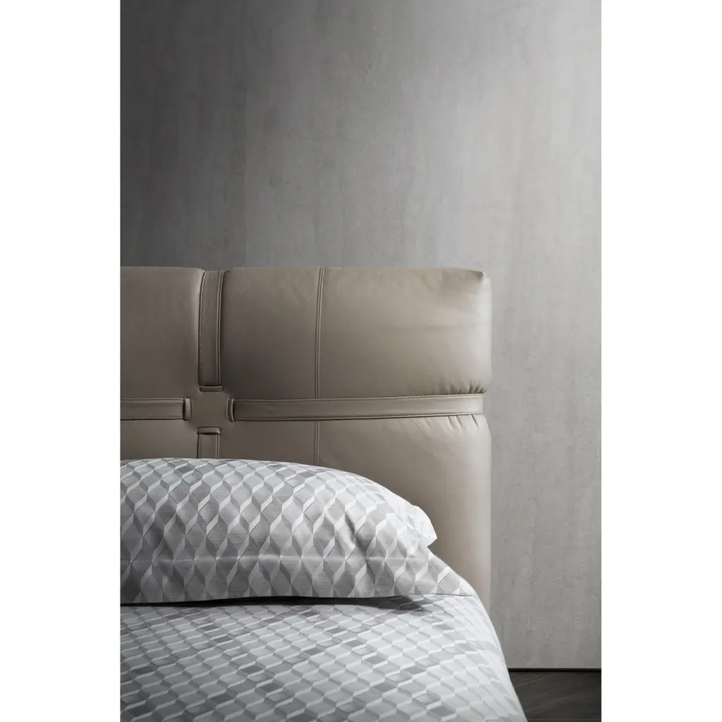 Elegantly tailored details for a double-size bed characterized by an unusual combination of straps and eyelets on the headboard and the panel surrounding the bed. Original, contemporary and unmistakeable, New Bond is even more stylish with its top quality leather covers and straps, in the same shades.
