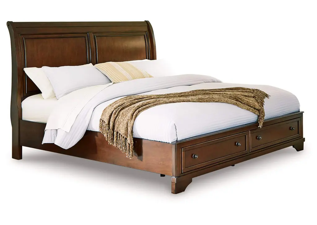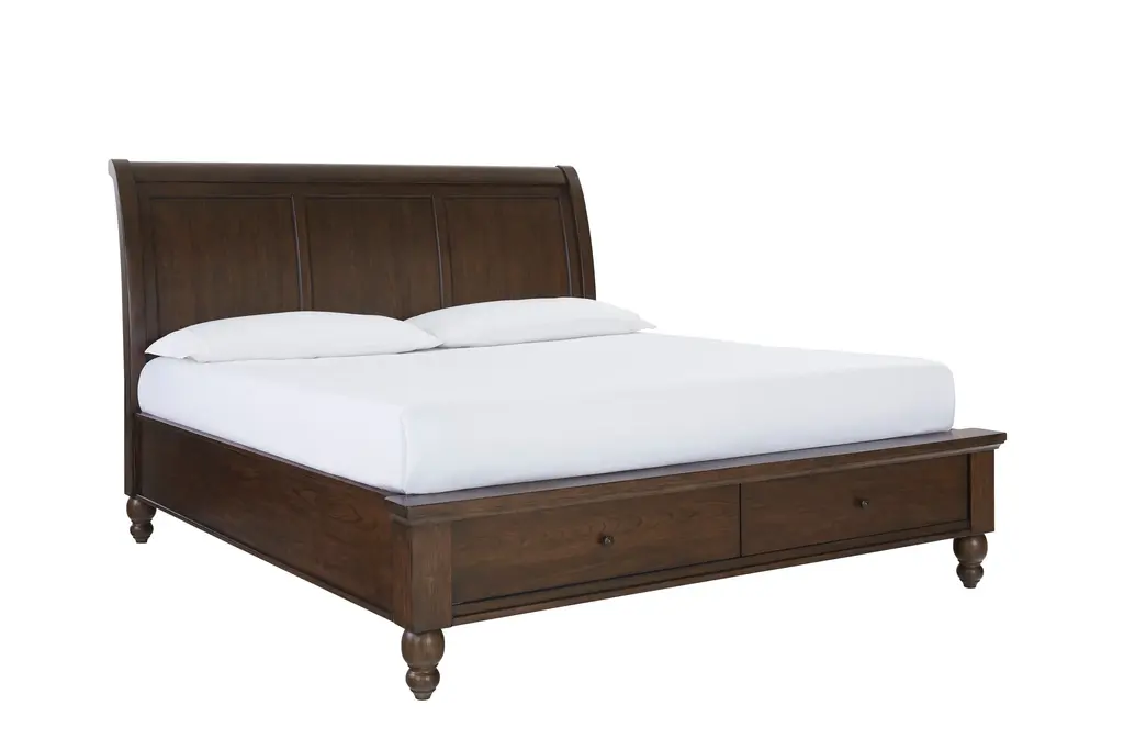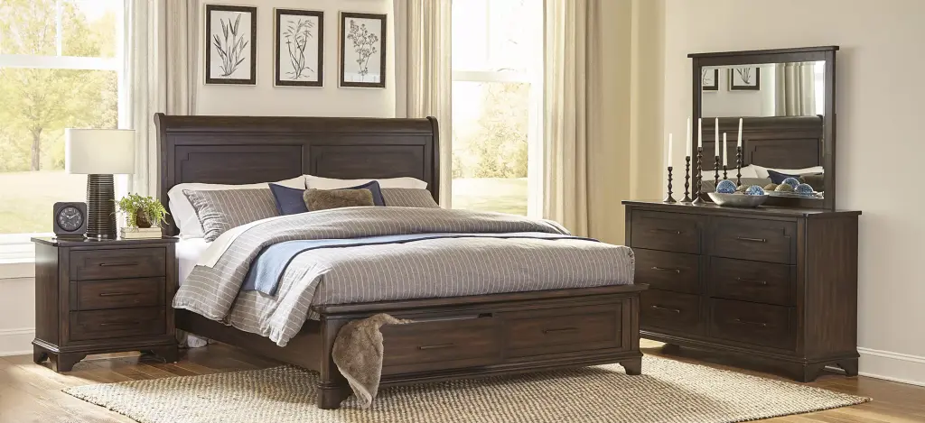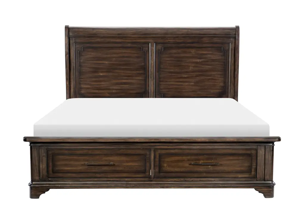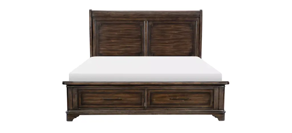 The rustic brown finish over acacia wood and veneer, solidifies the rusticated design of the Leesa Queen Bed. Its rugged aesthetic and traditional lines create a versatile addition to your transitionally styled bedroom.