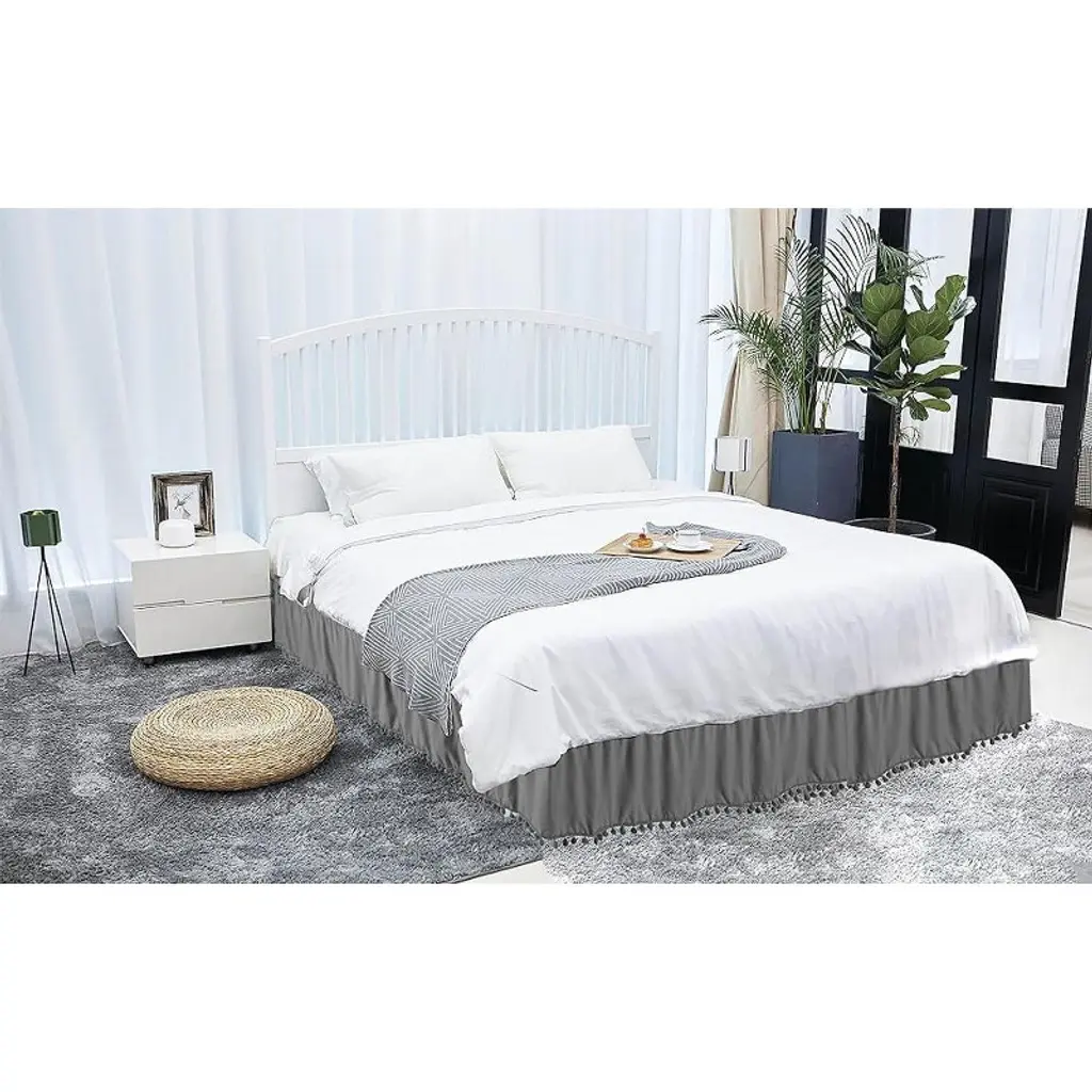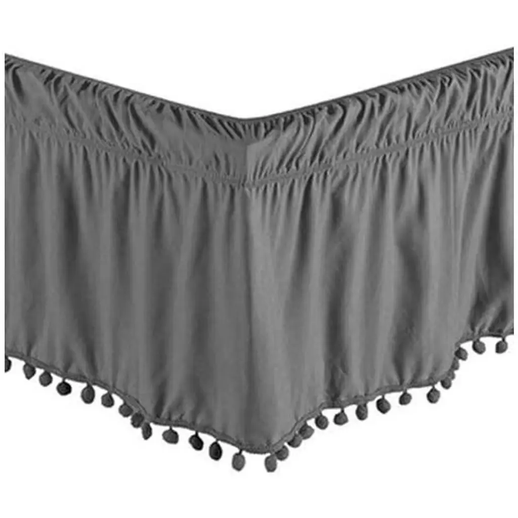 Legacy Decor Twin/full Bed Skirt Dust Ruffle With Pom-pom Fringe 100% Brushed Microfiber With 14" Drop Grey Color