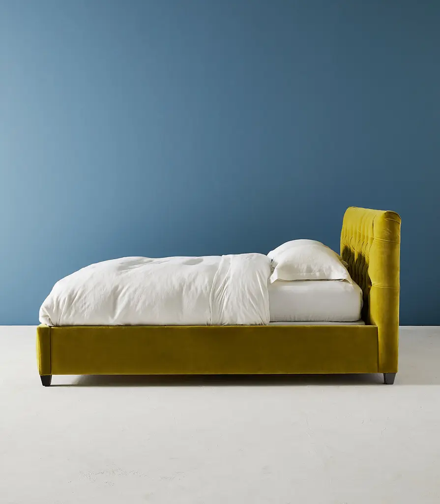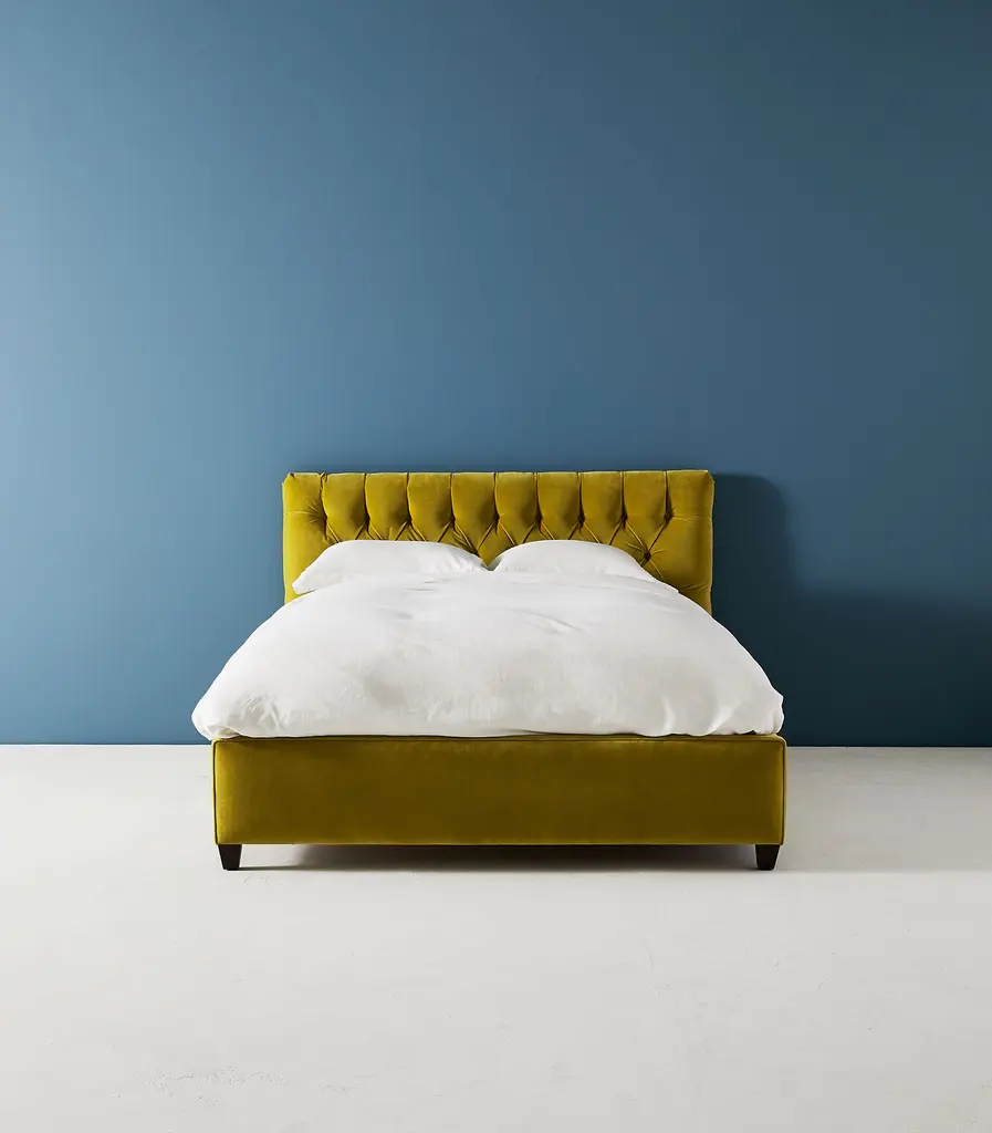 Glamorous, yet demure, this handmade beauty has all the hallmarks of Hollywood Regency style: diamond-tufted detailing, plush upholstery and a low-slung silhouette. We're outfitting ours with glimmering accent pillows and textured throws.