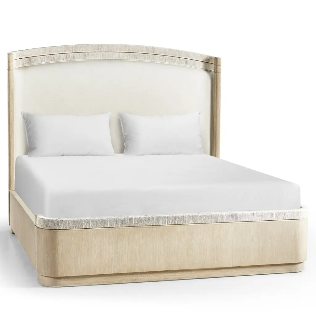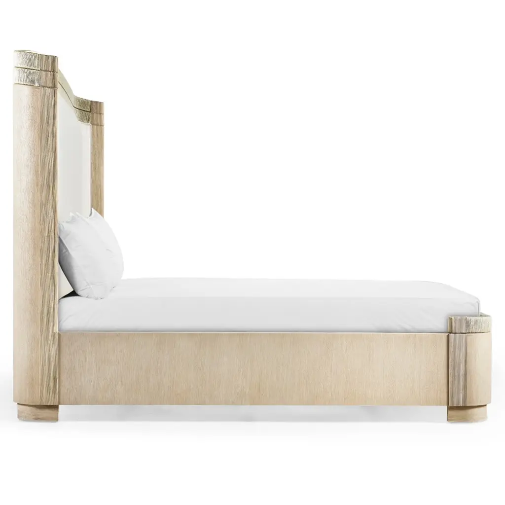 Leonard Coastal Beach Cream Performance Whitewashed Oak Bed - King