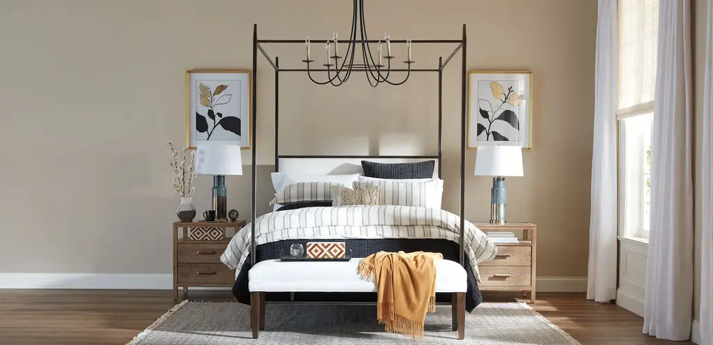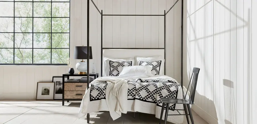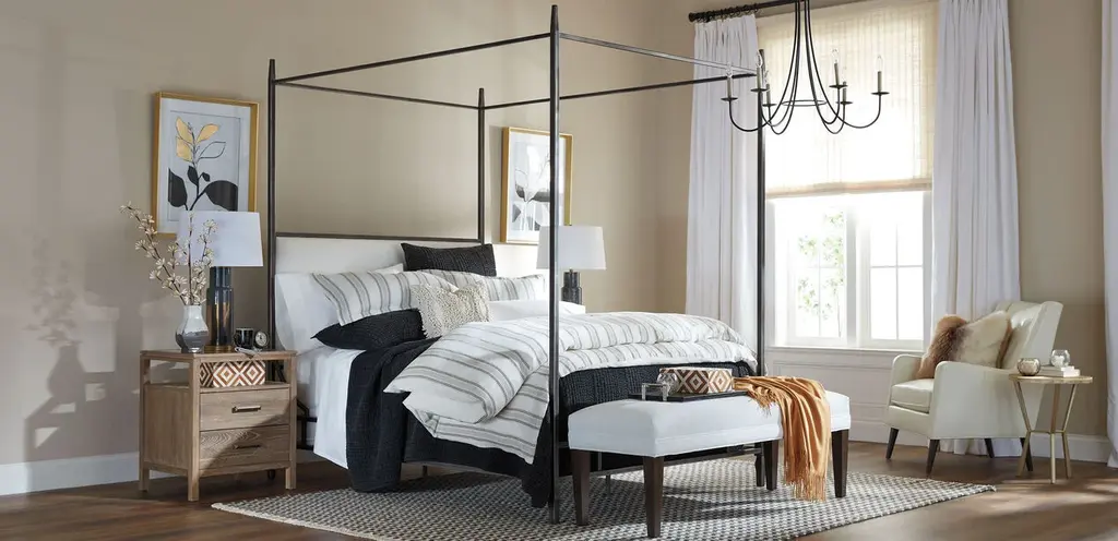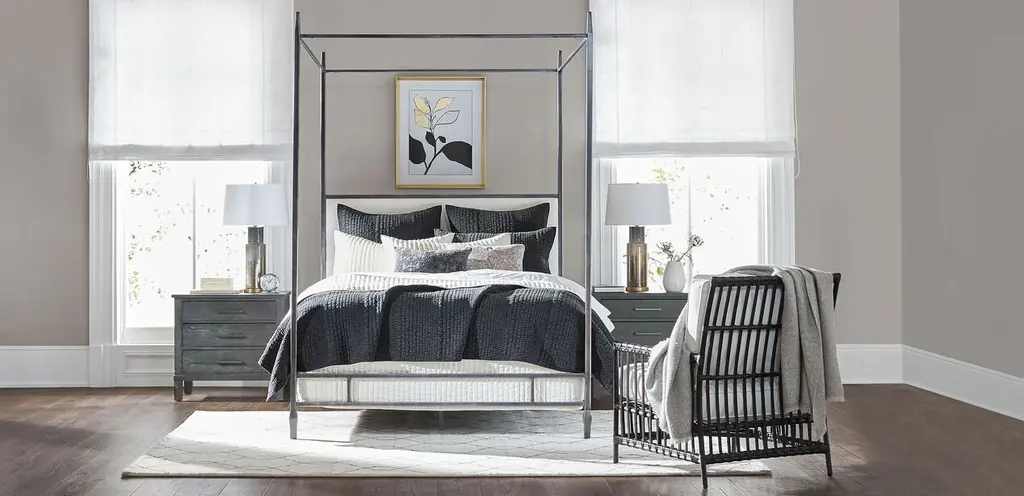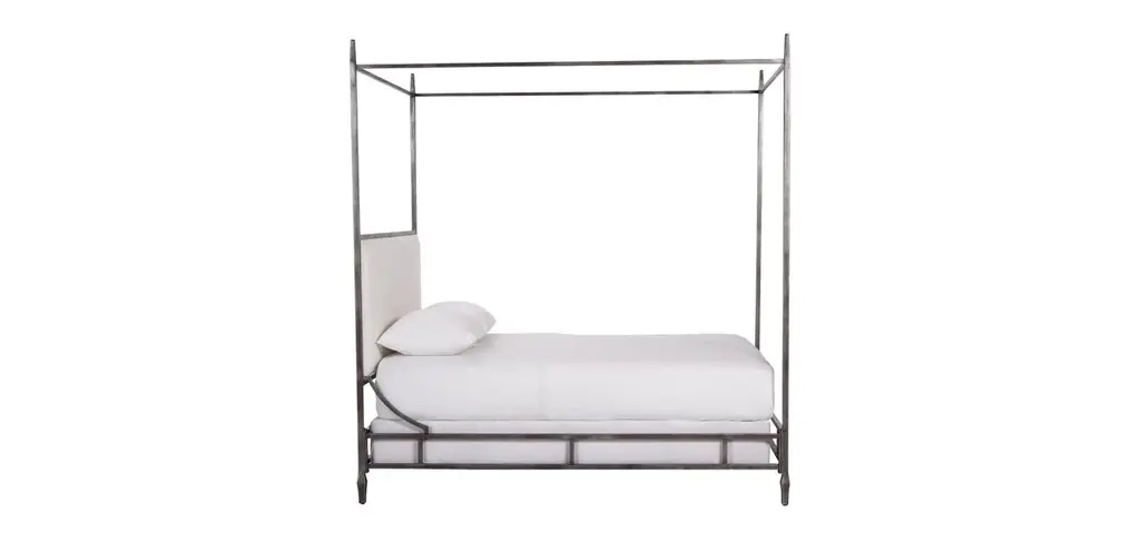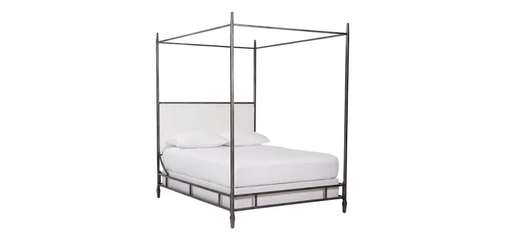 Simplicity by design. The Lincoln iron poster bed is a perfect choice for a variety of bedroom settings, as it works well in both traditional and contemporary spaces. It’s made of square metal tubing with a dark zinc finish that’s been hand-rubbed at the edges. Choose between a selection of fabrics online or many more fabrics available in-store to make Lincoln uniquely your own.