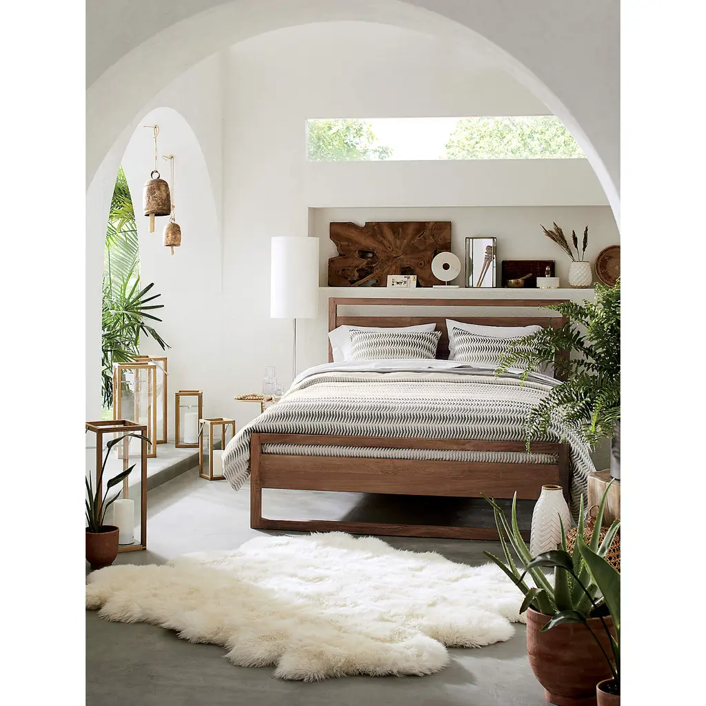 Linea's clean, linear styling in FSC ®-certified reclaimed solid teak is left unfinished in its natural state to showcase the wood's unique variations in knots, grain, texture and color. Open framing open framing of the headboard and footboard lends an airy, floating feel.