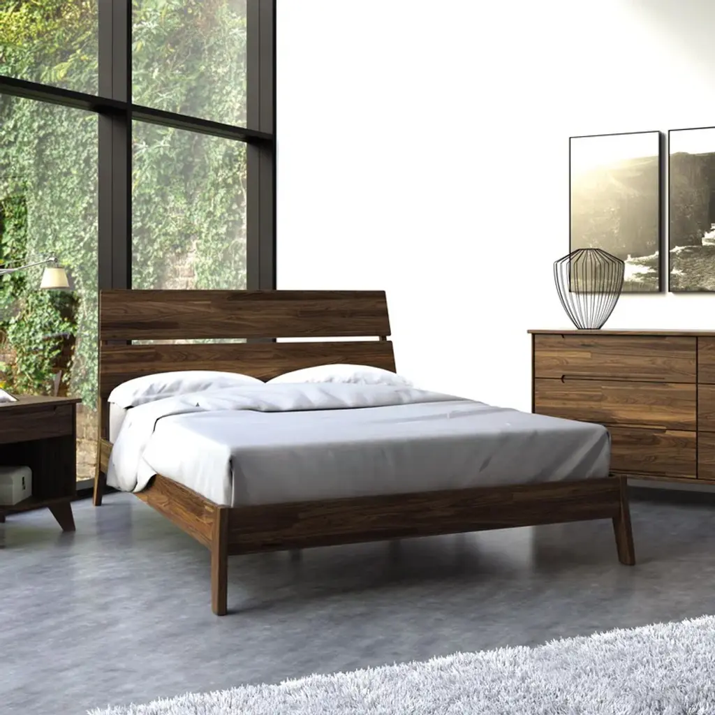 Smart, streamlined and handsome, the Linn Bed from Copeland Furniture is a well-crafted contemporary design ready to elevate any bedroom in your home. With a low profile and simple structure, this platform bed exudes mid-century modern influence and complements other furnishings from the Linn Collection. Using natural wood imperfections to bring out the true character of this bed, Copeland uses the finest American black walnut solid wood for a durable and timeless design. Highlights
