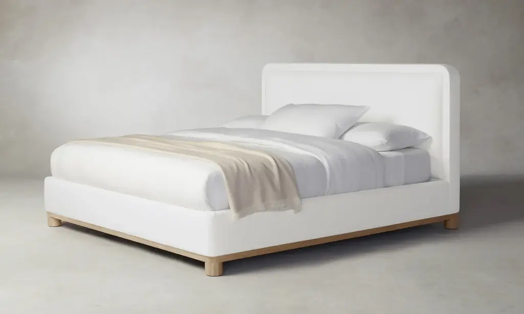 Tailored and timeless, this upholstered bed is the epitome of polished comfort from the exclusive Ginny Macdonald collection for Lulu and Georgia. Inspired by Ginny's English heritage and handmade in Los Angeles, each piece in the collection fuses her British roots with her California lifestyle. Designed with clean lines and available in a variety of colors and fabrics, this bed's simple design shines in just about any bedroom.