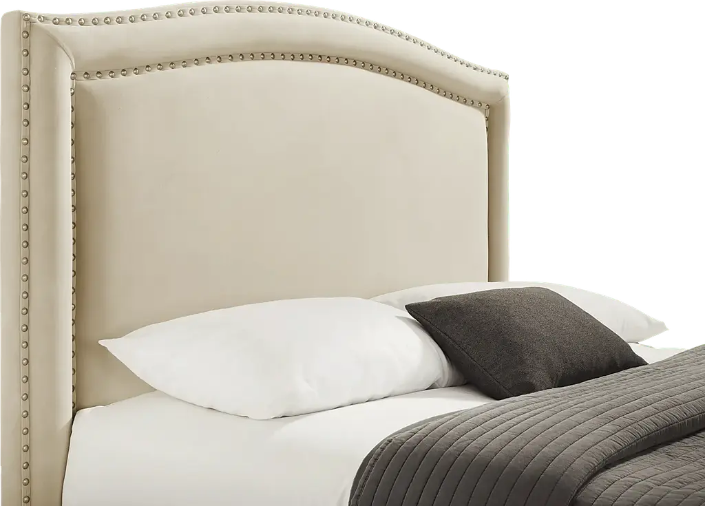 A contemporary design and classic silhouette make the Loden II bed a wonderful addition to your sleep space. Soft cream-colored upholstery is accented with a double row of nailhead trim along the gentle curves of the headboard, bringing a subtle dose of glamour and a clean look that remains timelessly elegant.