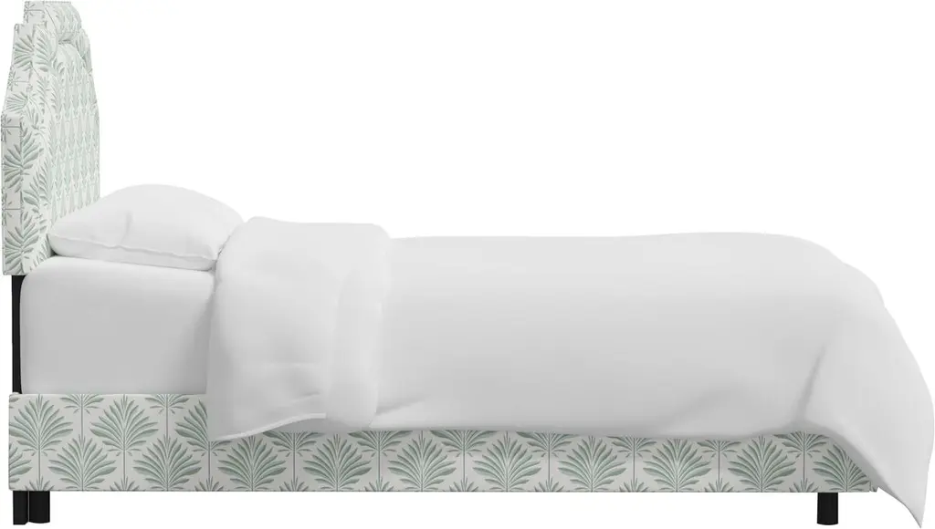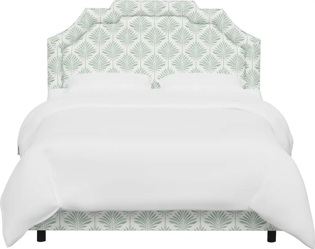 Exclusive to One Kings Lane: The graceful fanlike leaves of the cerifera palm inspired the fabric covering this equally graceful bed. Made in the USA, the features a well-cushioned headboard ideal for leaning against while you're reading or watching TV.