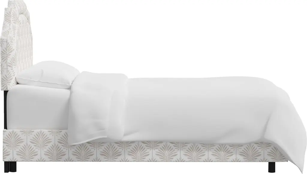 Exclusive to One Kings Lane: The graceful fanlike leaves of the cerifera palm inspired the fabric covering this equally graceful bed. Made in the USA, the features a well-cushioned headboard ideal for leaning against while you're reading or watching TV.