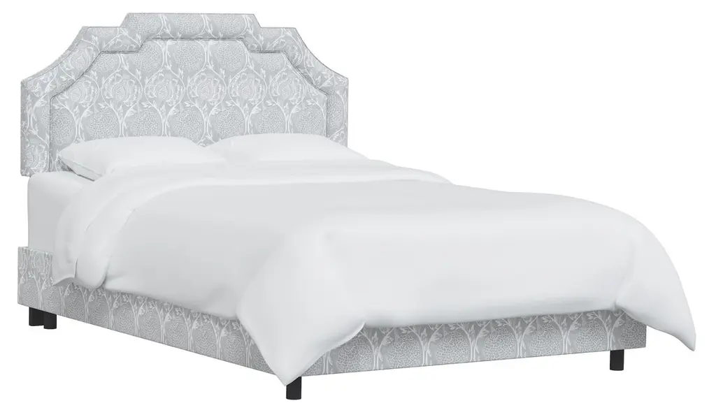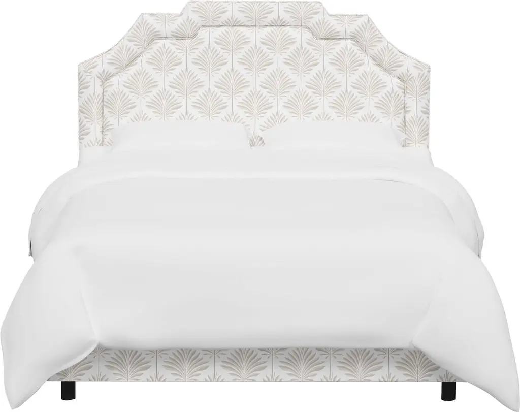 Exclusive to One Kings Lane: The graceful fanlike leaves of the cerifera palm inspired the fabric covering this equally graceful bed. Made in the USA, the features a well-cushioned headboard ideal for leaning against while you're reading or watching TV.