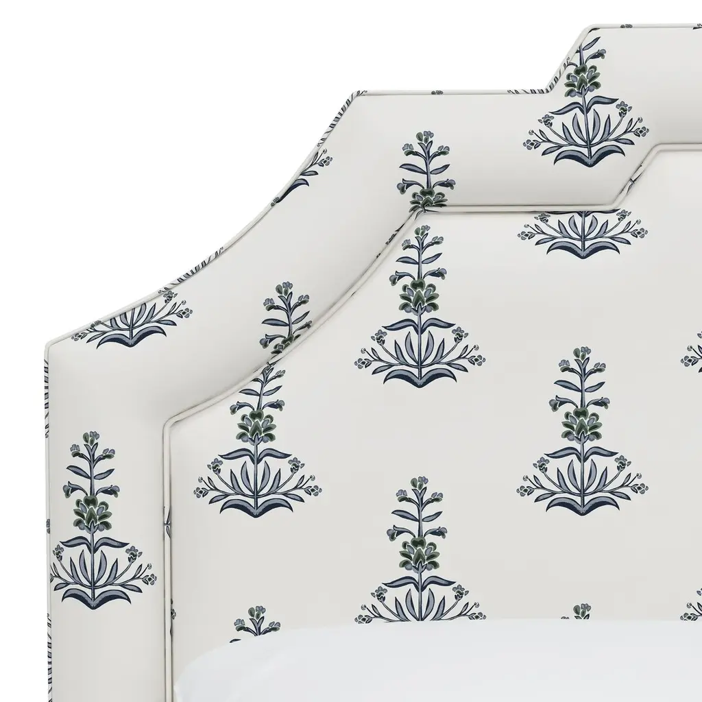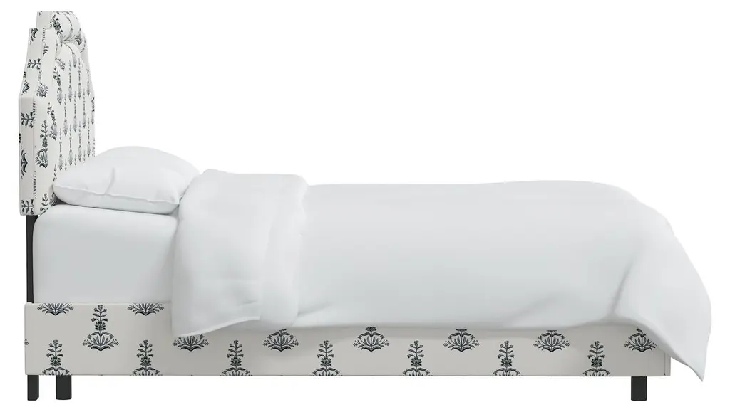 Exclusive to One Kings Lane: Graceful lines and upholstery inspired by Indian block prints give this bed a timeless elegance; foam-and-fiber padding ensures long-lasting comfort and support. Requires a mattress and a box spring.