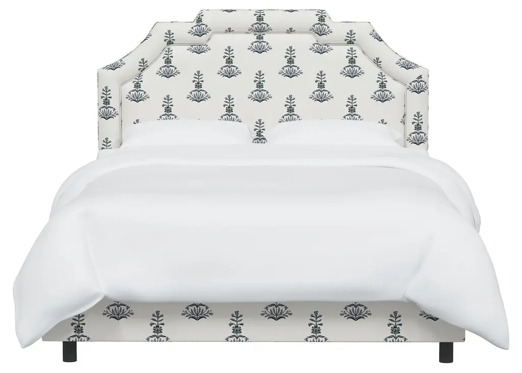 Exclusive to One Kings Lane: Graceful lines and upholstery inspired by Indian block prints give this bed a timeless elegance; foam-and-fiber padding ensures long-lasting comfort and support. Requires a mattress and a box spring.
