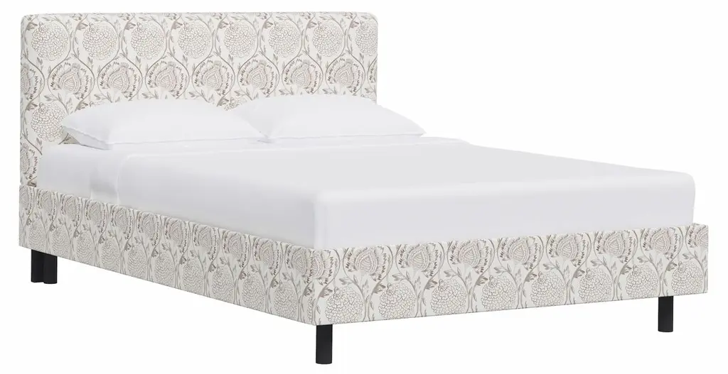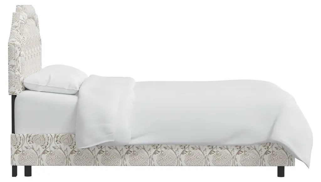 Featuring fabric by Cloth & Co. exclusive to One Kings Lane: Clean, angular lines and neatly tailored upholstery give this bed a modern elegance; foam-and-fiber padding ensures long-lasting comfort and support. Requires a mattress and box spring. Handcrafted in the USA.