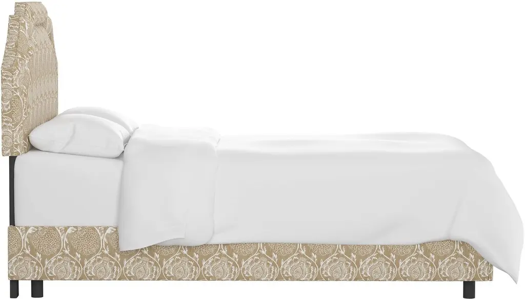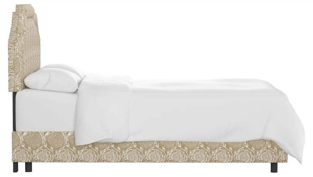 Featuring fabric by Cloth & Co. exclusive to One Kings Lane: Clean, angular lines and neatly tailored upholstery give this bed a modern elegance; foam-and-fiber padding ensures long-lasting comfort and support. Requires a mattress and box spring. Handcrafted in the USA.
