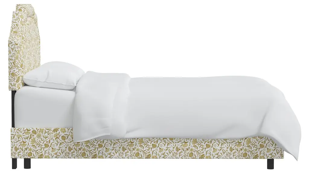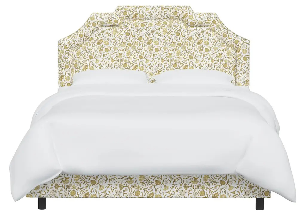 Exclusive to One Kings Lane: The floral upholstery, reminiscent of classic block prints, complements this bed's elegant silhouette. What's more, the amply padded headboard is ideal for those who like to read or watch TV in bed.