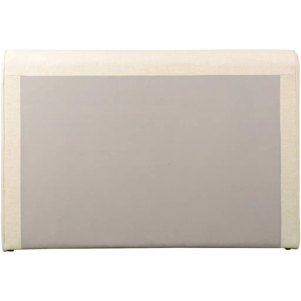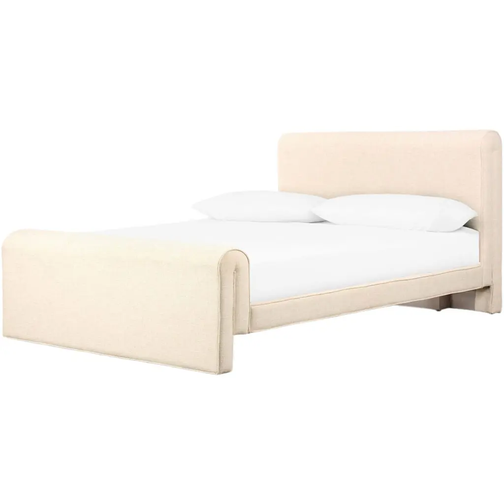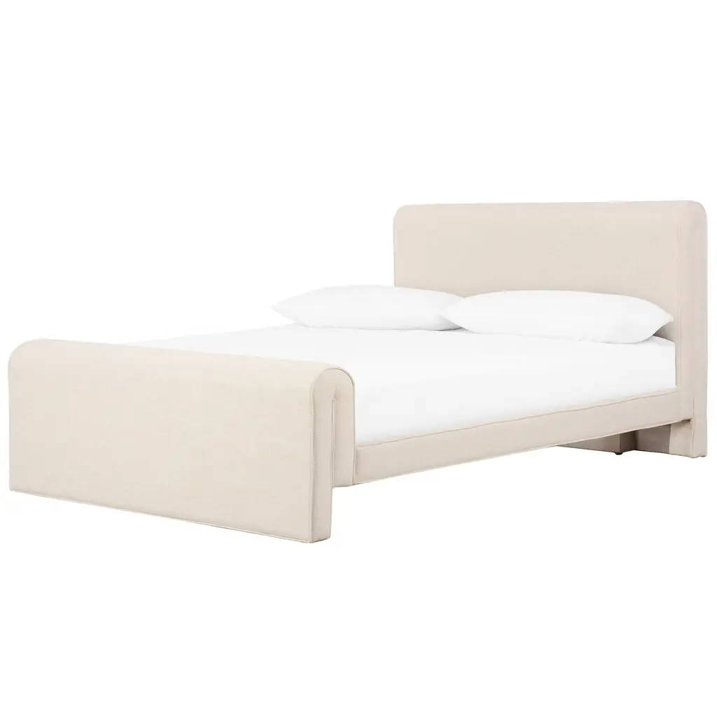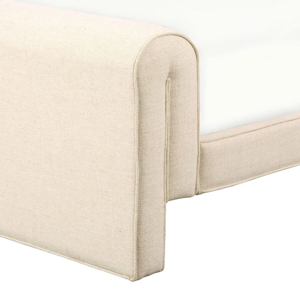 This bed's "folded" headboard and footboard call to mind mod '60s style, but the cream color of the stain-resistant upholstery gives it a timeless finesse. Generous cushioning makes the headboard a pleasure to lean against when reading or watching TV.