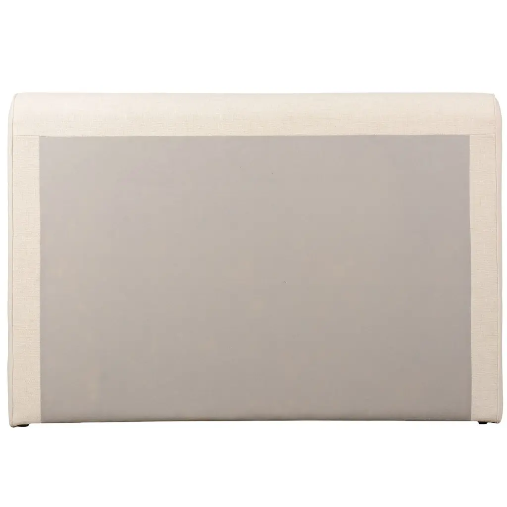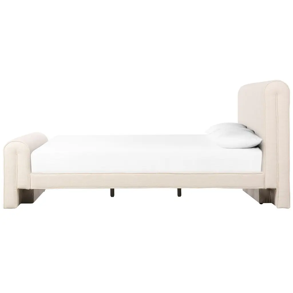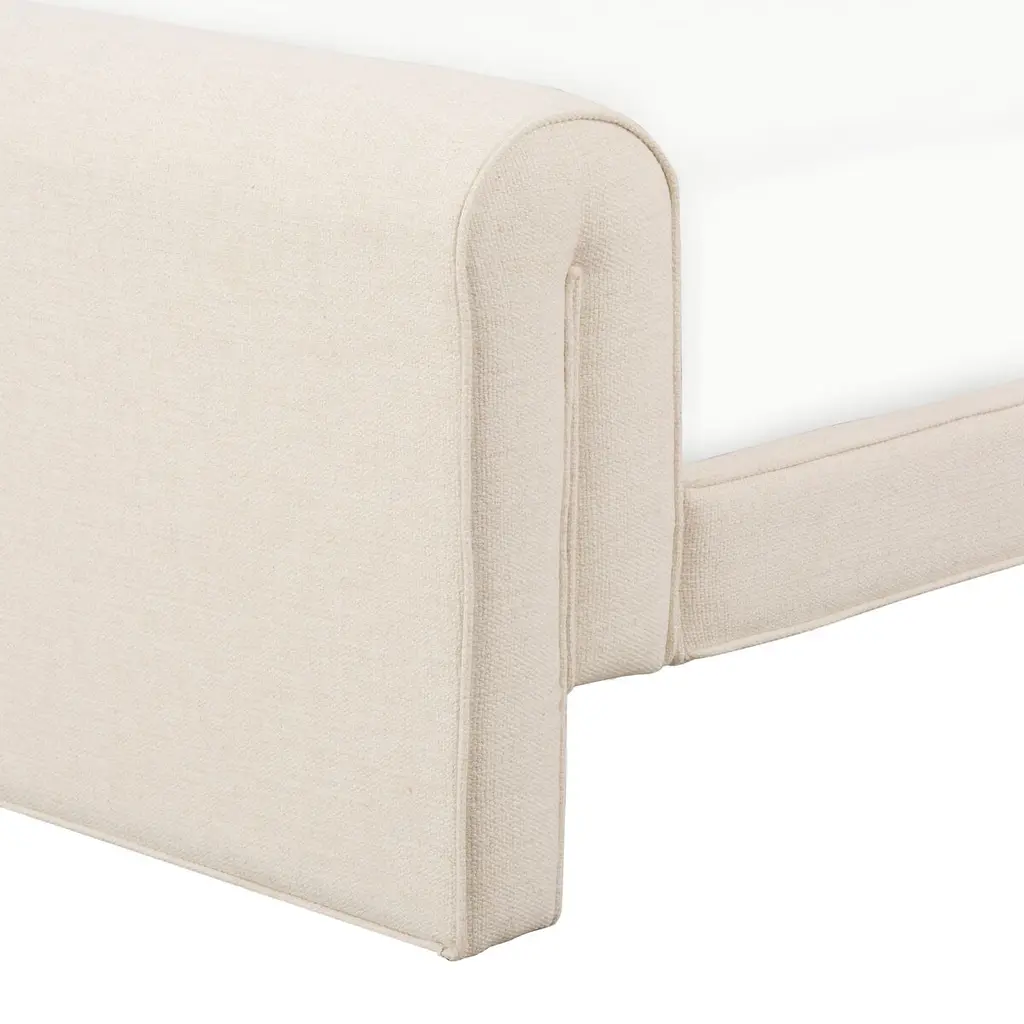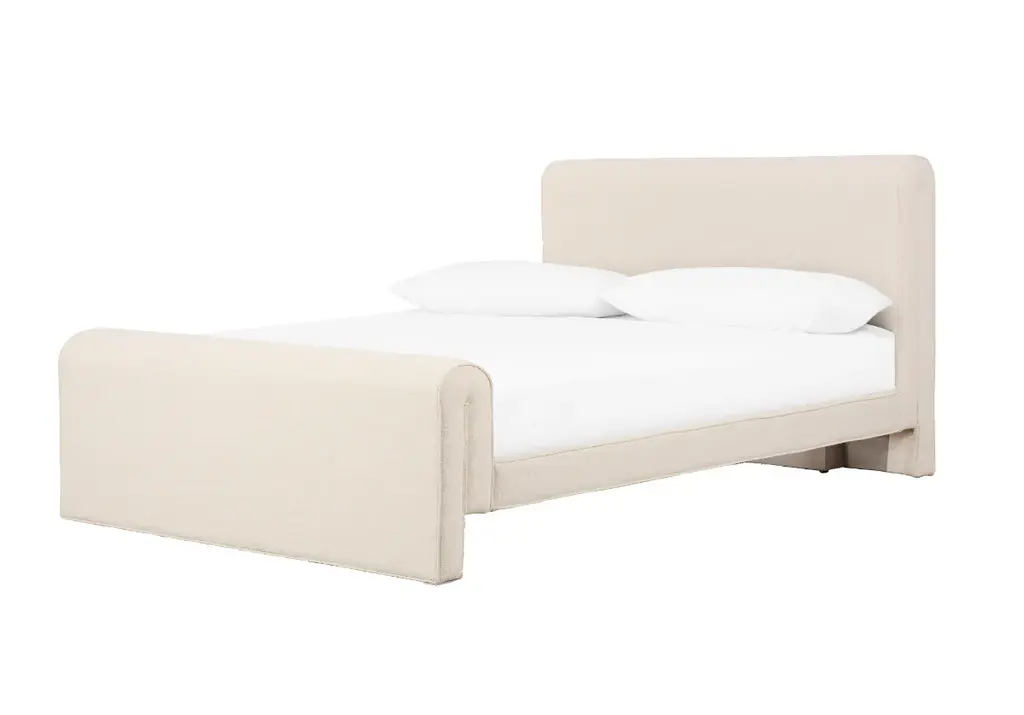 This bed's "folded" headboard and footboard call to mind mod '60s style, but the cream color of the stain-resistant upholstery gives it a timeless finesse. Generous cushioning makes the headboard a pleasure to lean against when reading or watching TV.