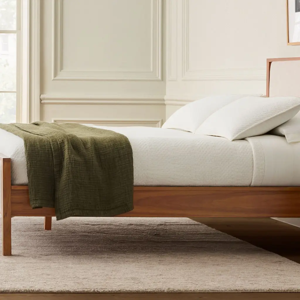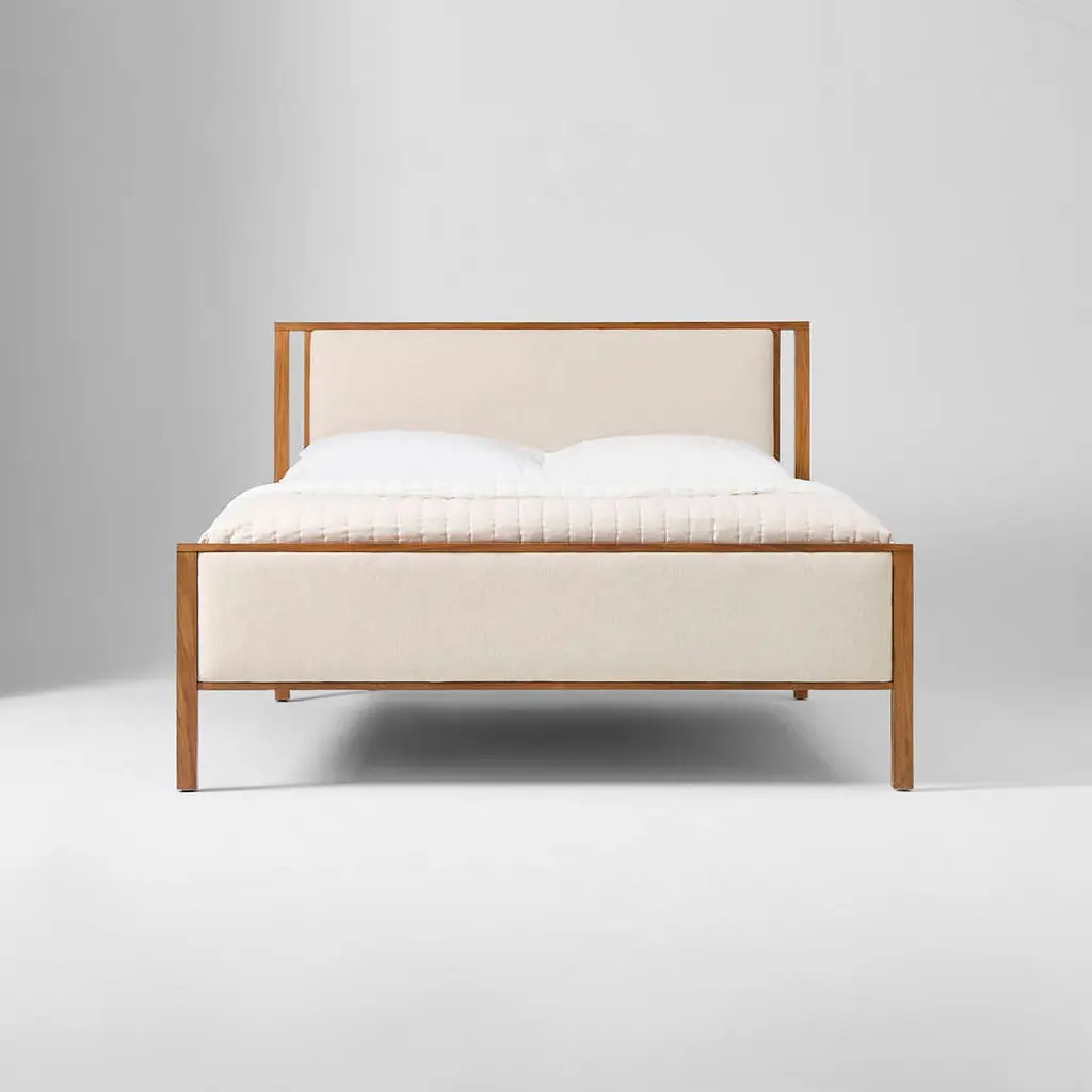 Classic clean-lined silhouette updated with delicate, refined details. The rich walnut finish and neutral upholstery go with anything. Made from kiln-dried, sustainably sourced wood. Contract Grade, so you know it’s built to last.