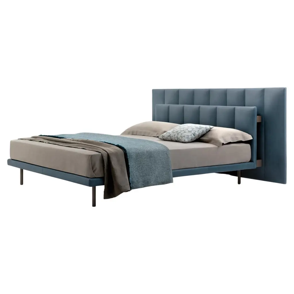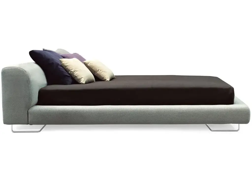 Lowland bed has upholstered headboard and sides, filled with polyurethane foam. Framesupports with adjustable heights. Accomodates standard European mattresses only.A changing landscape made from elemental shapes which dynamically interact with one another. Patricia Urquiola deconstructs the classic sofa, and re-proposes it through a synthesis of surfaces. Simplicity, definition, dynamism and transformation are the uniting characteristics which bring together the individual elements: seats, backrests and armrests are modules which can be coordinated, combined and endlessly reconfigured. In 2000, the designer had already grasped what is now a well-established concept, the creation of system which works as a single piece, a project which goes beyond modularity-as-function to give absolute freedom in creating compositions dedicated to comfort and style.Lowland collection is composed by sofas and beds.