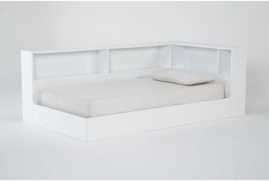 Luca White Full Wood Corner Bookcase Bed | Captain | Shelves