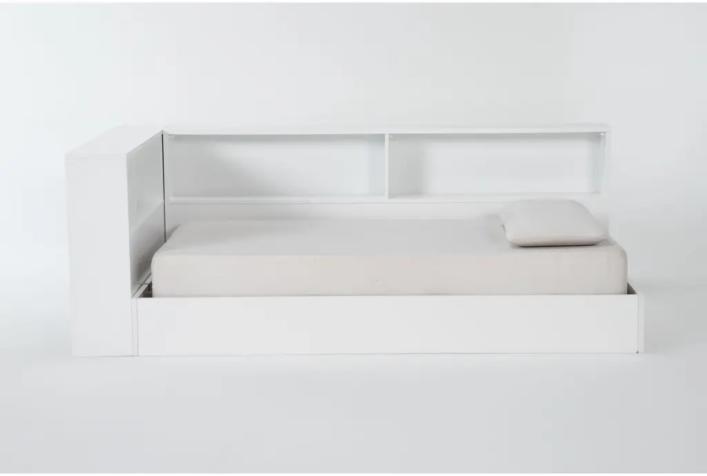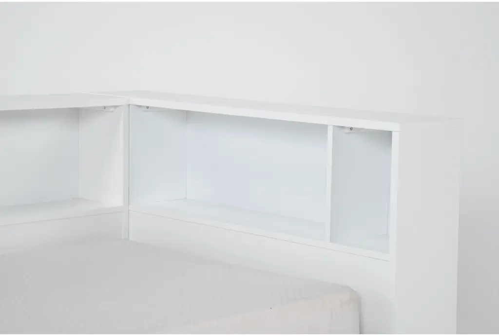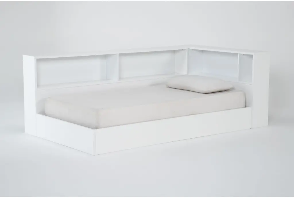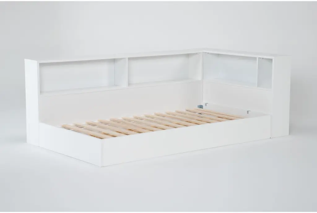 Luca White Twin Wood Corner Bookcase Bed | Captain | Shelves