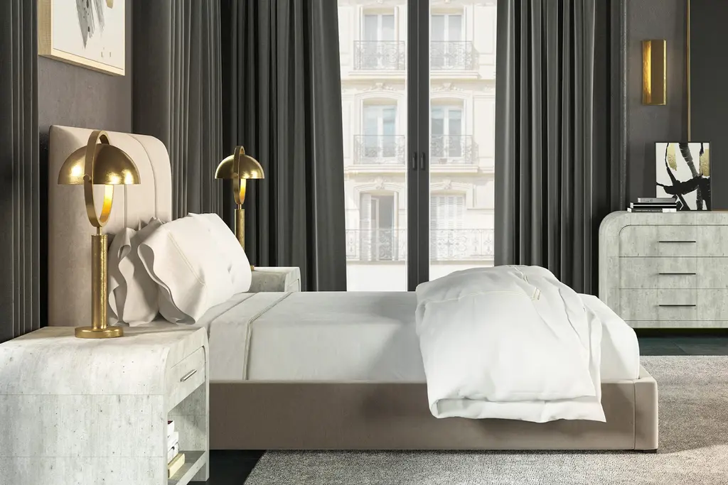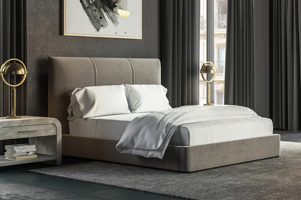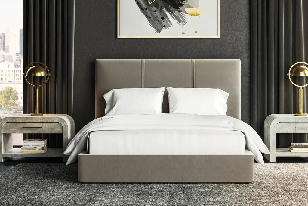 A plush and elegant platform bed frame with stately simplicity. Inspired by the stunning scenery and architecture of the famous Swiss city, Lucerne is a platform bed that exudes a timeless elegance. Anchored by its plush, oversized headboard, this bed frame adds an inviting ambiance to any bedroom.